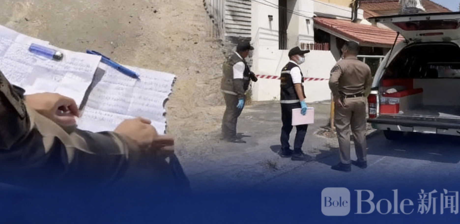 Bole新闻专讯:泰国春武里府芭提雅地区5日发生一起中国男子离奇死亡案件。一名中国籍男子被发现吊死在铁路旁的简易棚架上,现场还留下3封用中文手写的信件,疑似遗书。目前警方已介入调查,案件具体死因仍有待进一步确认。
