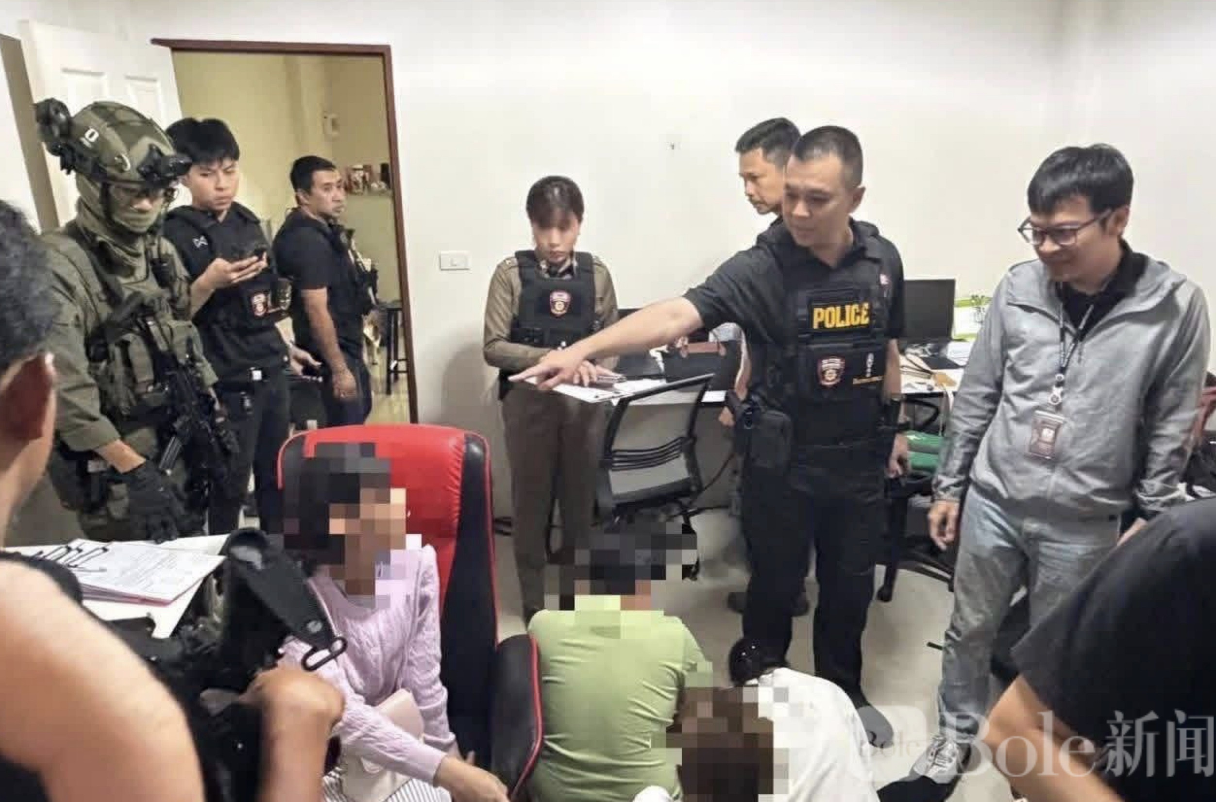 Bole新闻专讯:泰国春武里府警方3月4日在班森地区一处公寓内,成功捣毁了一个由华人灰产操控的大型网络赌博诈骗窝点,现场抓获7名涉案嫌疑人,同时查获涉及资金流及相关物证,价值超过1亿泰铢。