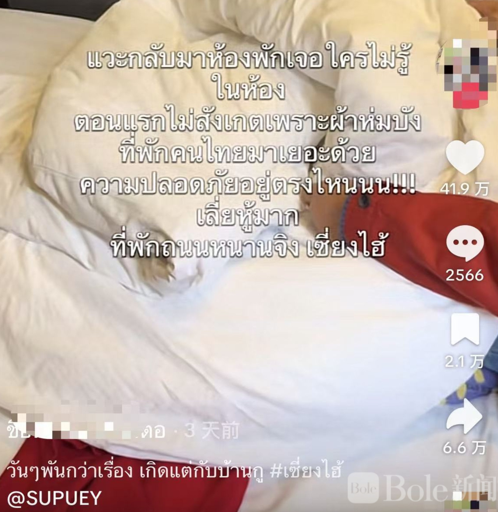 Bole新闻专讯:近日,一段泰国游客在上海酒店“回房惊见陌生男子睡在床上”的视频在泰国社交媒体上迅速走红,播放量短时间内突破千万次,引发大量网友讨论。视频画面颇具戏剧性——几名泰国游客结束一天行程返回酒店房间,刚打开门却愣在原地:床上竟躺着一名陌生男子,似乎正睡得安稳。