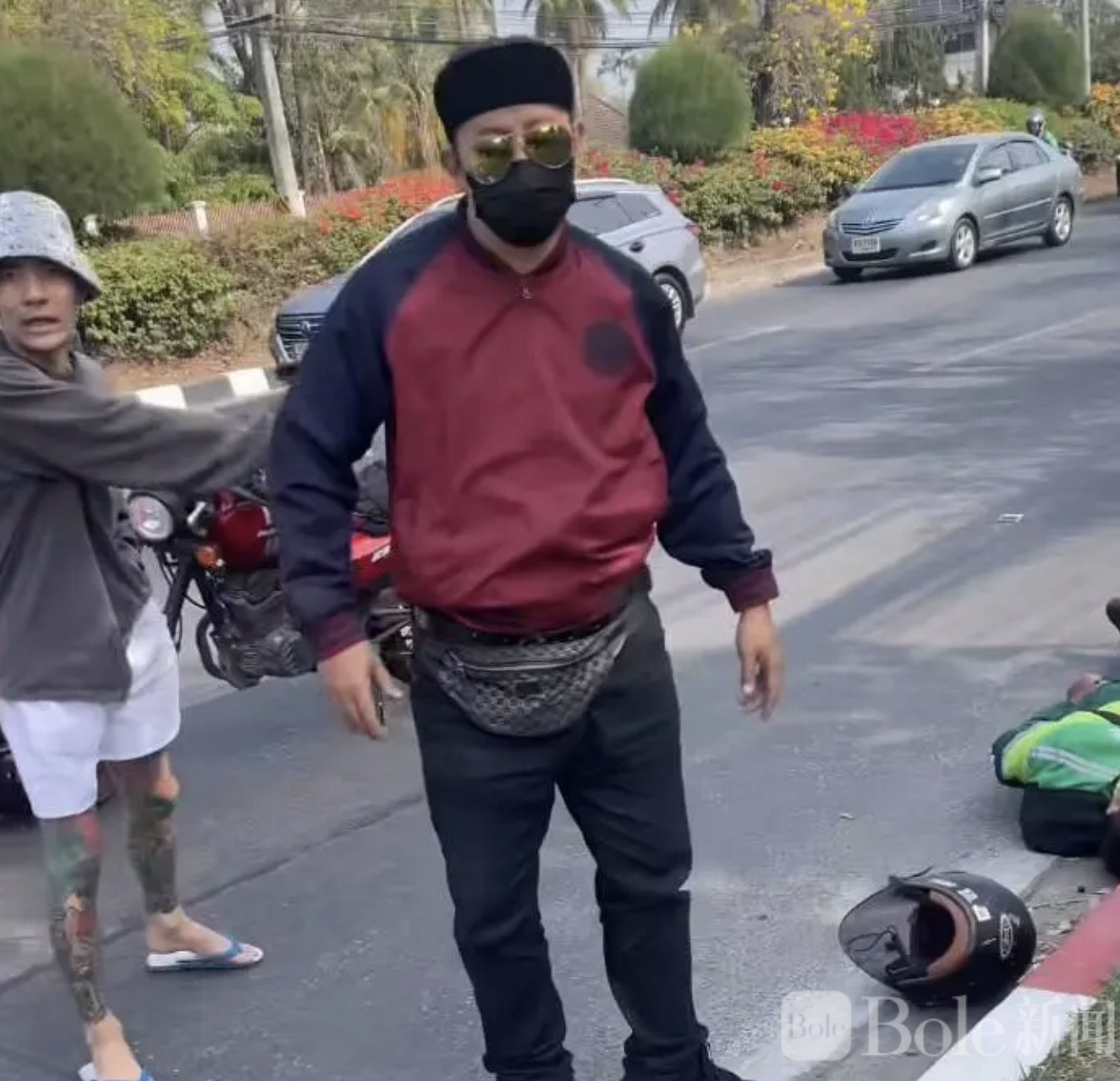 值得一提的是,就在冲突最激烈的时候,一名路过的市民挺身而出。据泰国媒体报道,这名男子是一家拳馆的老板,大家习惯称他为“X教练”。看到骑手被围殴,他立刻上前阻止冲突,并用手机记录下现场情况。如果没有他的及时介入,事情或许会变得更加严重。这段视频后来也成为警方调查的重要证据之一。