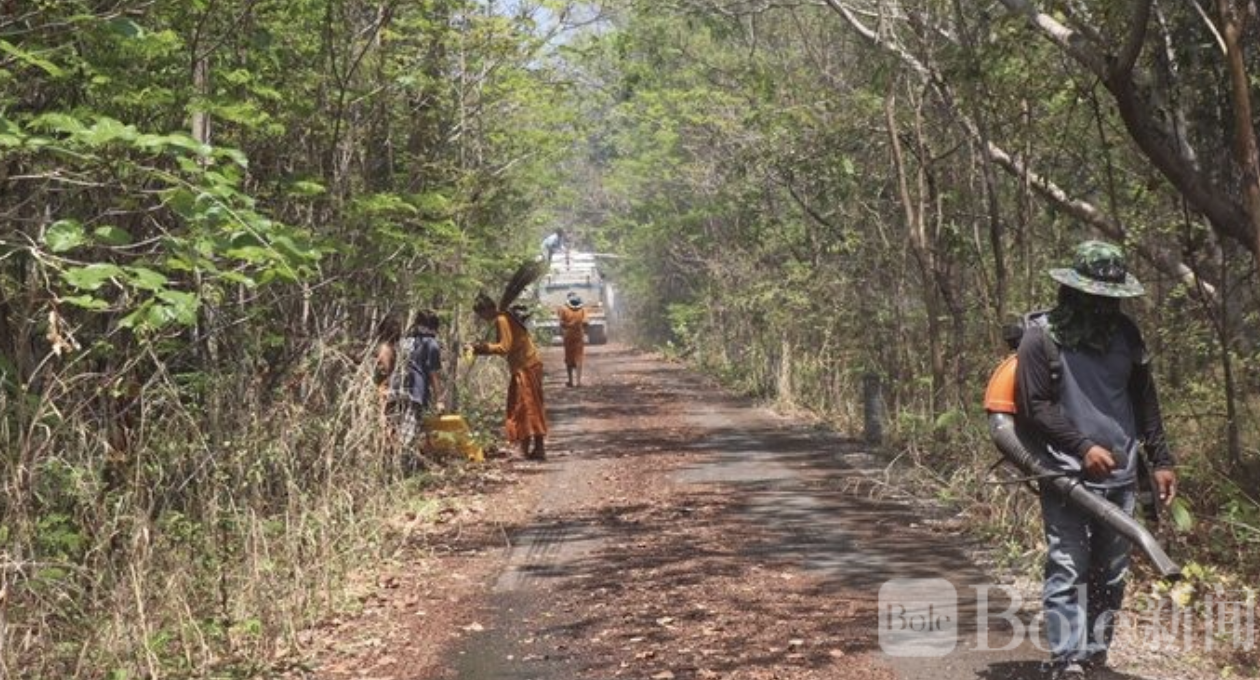 现场情况显示,普星山寺住持沙哈沙堪县僧团负责人西里帕塔纳尼泰法师博士,正带领寺院僧侣及信众驾驶寺庙水车参与灭火。然而,由于当天风势强劲、天气炎热,火势难以控制,目前已烧毁约300莱林地。
