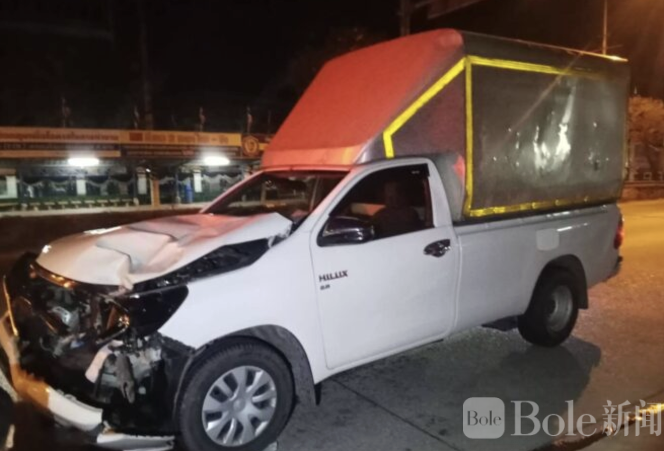 Bole新闻专讯: 2026年3月11日凌晨约2时,泰国春武里府帕通县农达灵镇素卡普拉育路发生一起致命交通事故。一辆摩托车在禁止掉头的路段突然掉头,被一辆直行的皮卡车高速撞上,造成骑士当场死亡,事故全过程被附近监控摄像头拍下。