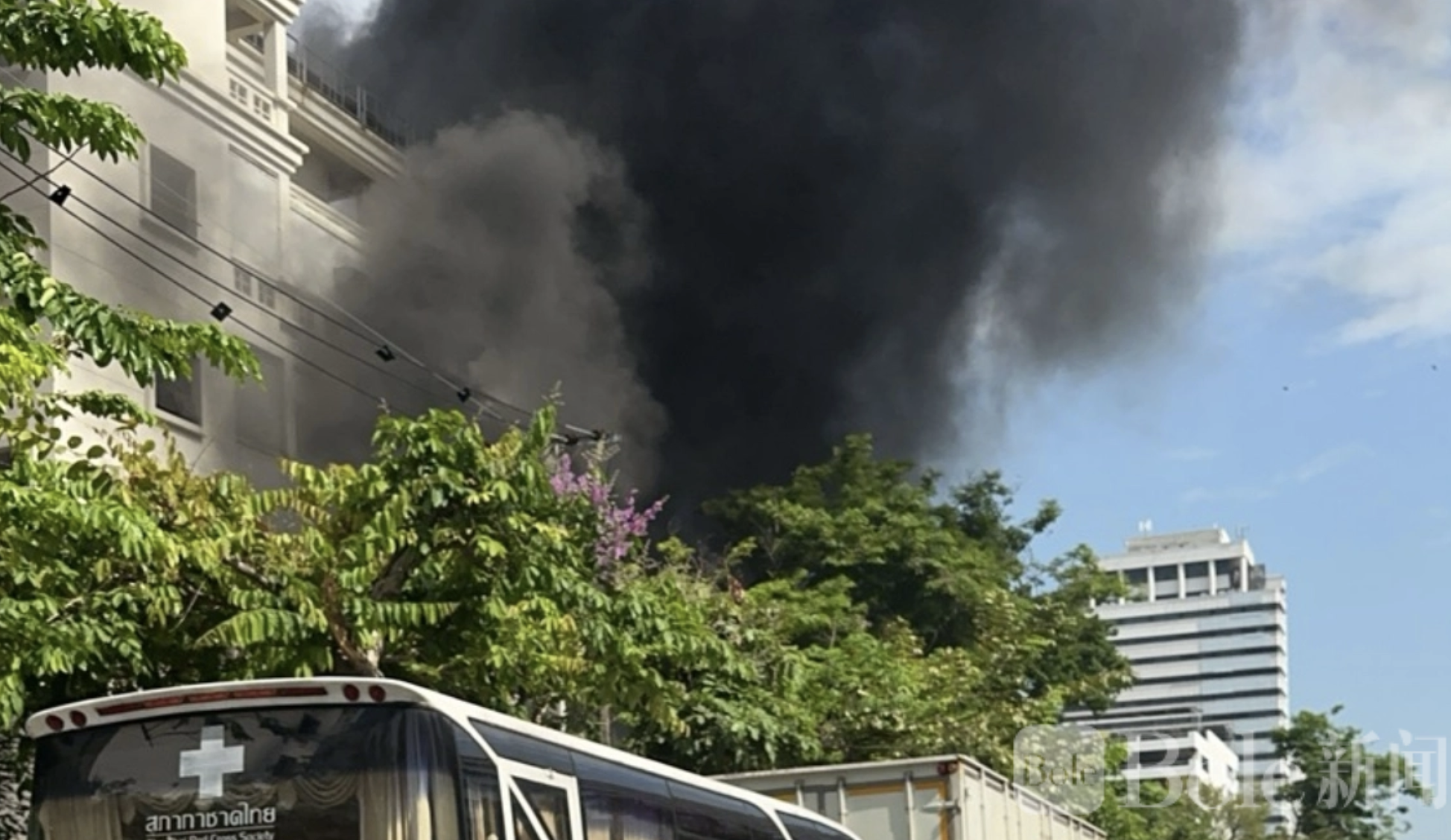 Bole新闻专讯: 2026年3月11日09:45,泰国曼谷市红十字会血液中心(位于阿恩里·杜南街,帕通万区)发生一起油罐房火灾。接警后,帕通万警署和曼谷市防灾与救援局迅速派出3辆消防车及专业人员赶赴现场。
