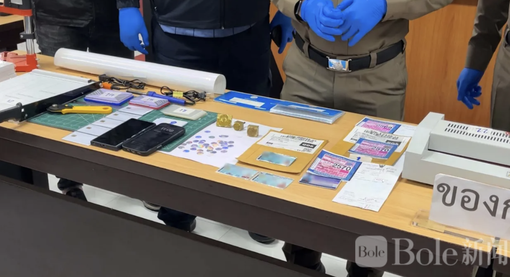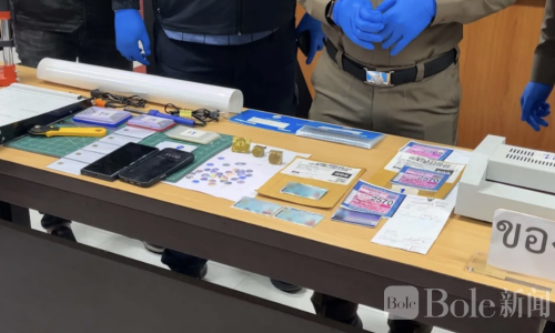 Bole新闻专讯:泰国东部第4警察分局警方近日捣毁跨省伪造证件犯罪团伙,抓获涉嫌主犯的30岁女子阿尔查拉潘及39岁男子阿南特,并查获大量伪造证件及相关作案工具。警方表示,该团伙通过社交平台以“受理各类证件”为名招揽客户,提供伪造身份证、驾驶证、车辆登记证及车牌服务,已运营超过一年,服务客户超过300名。