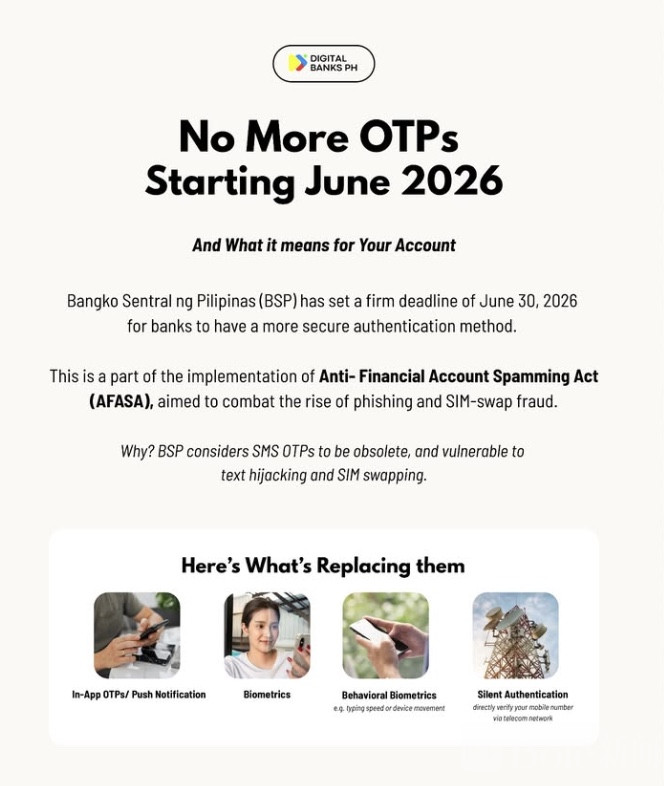 Bole新闻专讯:菲律宾中央银行(BSP)近日宣布,全国银行及金融机构必须在2026年6月30日前全面停止使用短信一次性验证码(SMS OTP)作为身份验证方式。这项新规是落实《金融账户反诈骗法》的重要举措之一,目的很明确——在网络诈骗频发的背景下,进一步加强金融账户的安全防护。