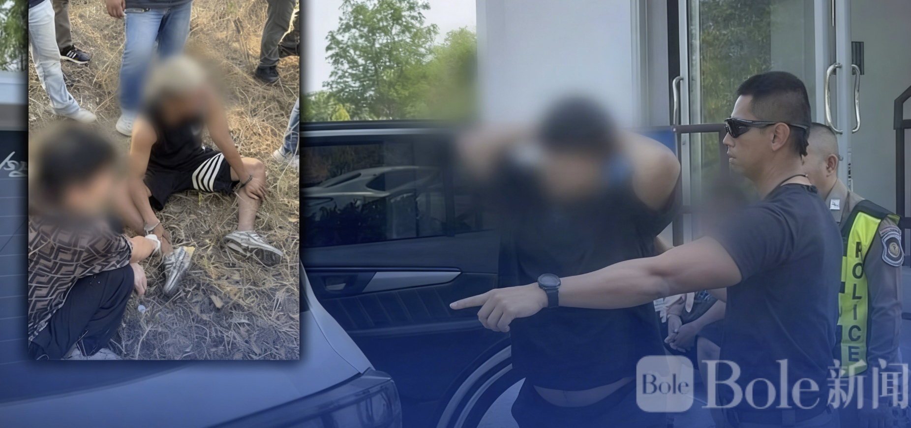 警方在跟踪两辆可疑车辆过程中,一辆棕色多用途车驶入加油站,另一辆白色多用途车继续前行。警力随即分组行动。在对棕色车辆进行盘查时,车内的中国籍人员企图逃跑,跑入加油站对面树林,并与警察发生冲突,企图抢夺武器。最终,警方协调当地警力进行地毯式搜索,将全部逃跑者控制,共抓获13人,其中泰国籍3人,中国籍10人。同时查获两辆车辆及73部手机。