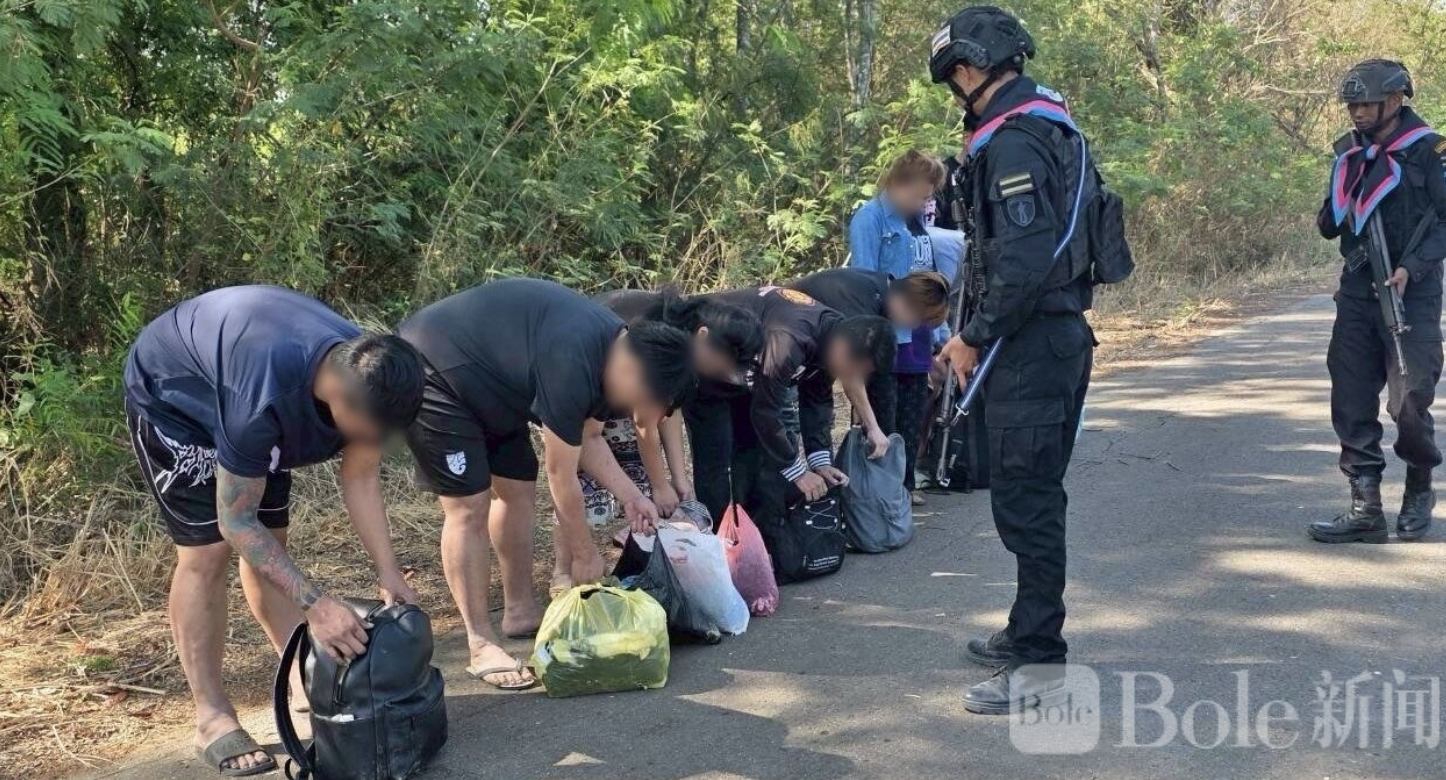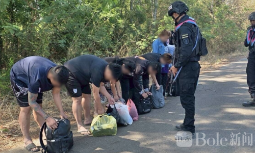 Bole新闻专讯:泰国沙缴府亚兰县泰柬边境日前截获9名非法越境回国的泰国人,这些人曾在柬埔寨波贝从事网络诈骗及赌博网站后台工作。被捕人员称,他们此前是被招聘信息诱骗到柬埔寨工作,随后被迫从事诈骗活动,趁柬埔寨近期大规模清剿诈骗园区之际逃回泰国,但最终在边境被巡逻部队发现并拘捕。