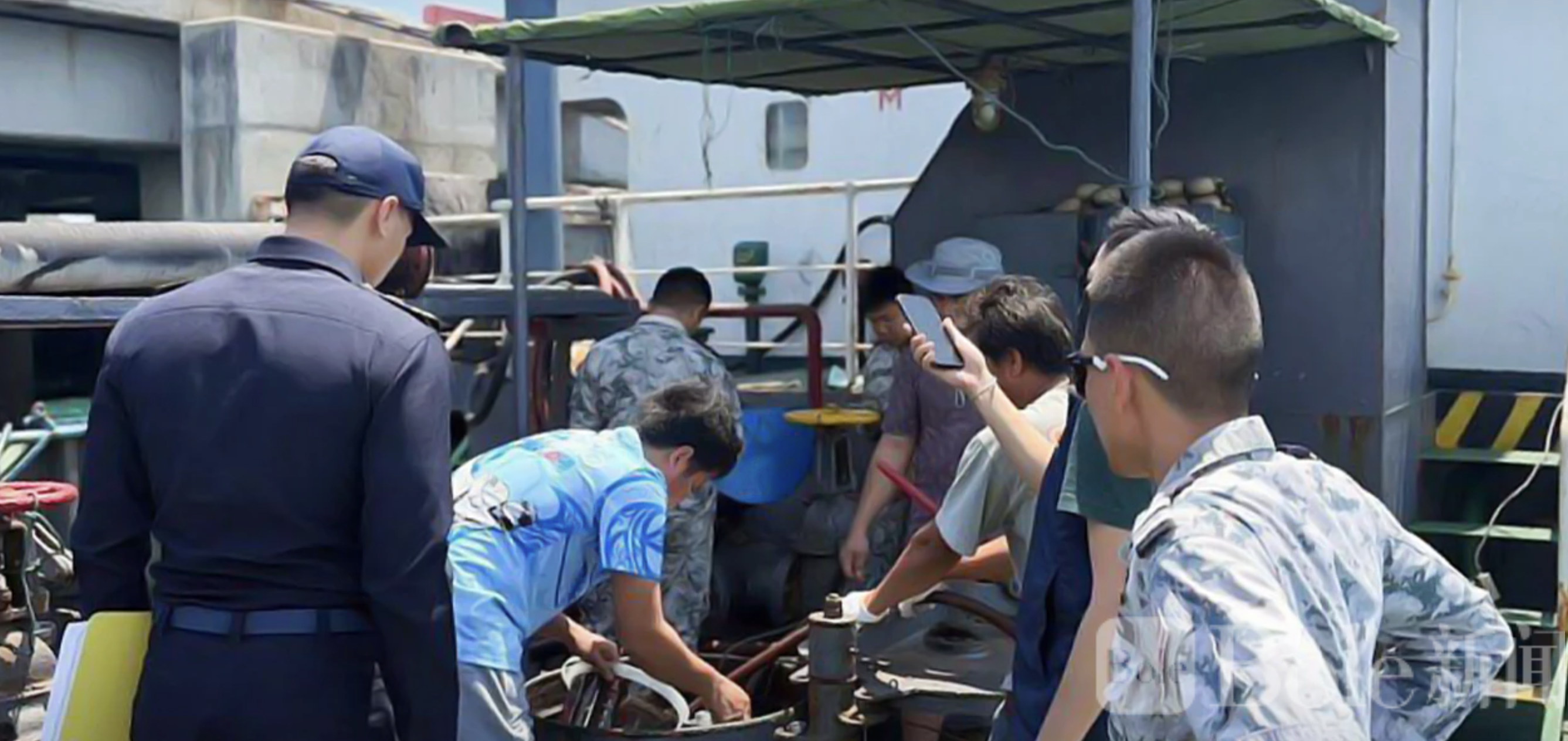 执法人员在船舱中发现大量液体燃料,外观类似柴油,但最初无法确认其来源。随后,工作人员对油样进行采集,并送往税务局专门实验室进行分析。同时,现场初步测量显示船上燃料约为25万升。