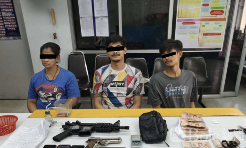 执法人员在现场缴获的证物包括:2把非法枪支、37张尚未裁切的1000泰铢假钞、约28克氯胺酮、约134.74克冰毒、363粒疯药、一辆被盗摩托车,以及3万多泰铢现金。