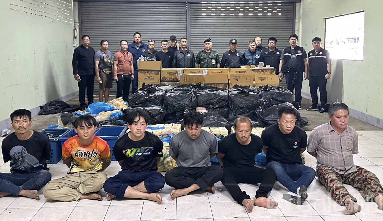 据清迈警方介绍,此次行动由第五地区刑事调查部门牵头,联合国家禁毒局(ONCB)、军方等多支执法力量,于3月15日上午8时展开突击搜查,目标锁定在母林区第1村的一处租赁仓库。嫌犯包括:Chatchai Sakulpannatat(33岁);Laosang Kasetsakulsub(50岁);Praphan Kasetsakulsub(39岁);Hasadin Saewang(21岁);Meng Saewang(21岁);Chumpol Laya(31岁);Tawan Rermmai(40岁)