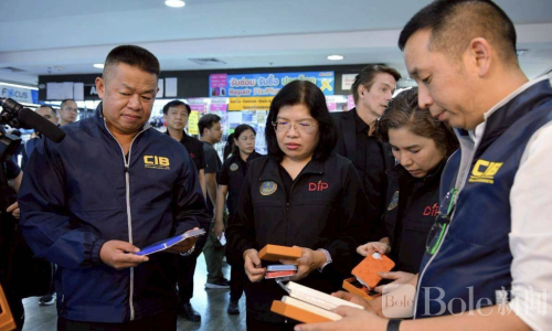 Bole新闻专讯:泰国执法部门近日在首都曼谷一处知名商场展开突击行动,成功捣毁一处长期销售假冒品牌商品的窝点,现场逮捕6名商贩,并查获大量仿冒商品,总价值约7000万泰铢。