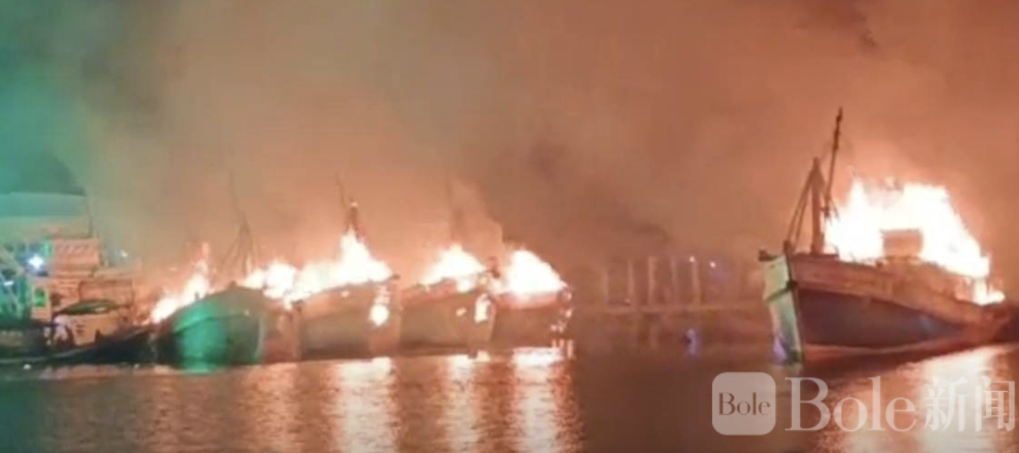 Bole新闻专讯:泰国南部洛坤府卡农县20日凌晨发生严重火灾,多艘停泊在港口的渔船突发大火,火势迅速蔓延,造成超过10艘渔船受损,初步估计经济损失超过1.5亿泰铢。