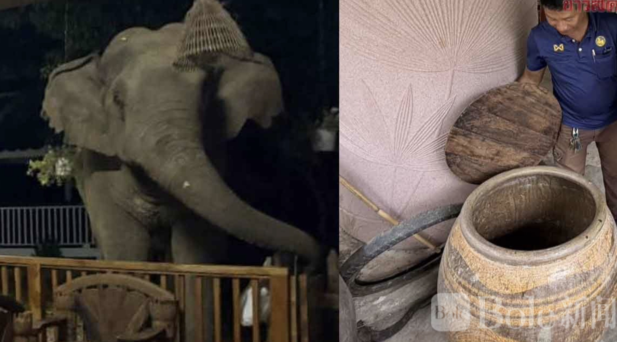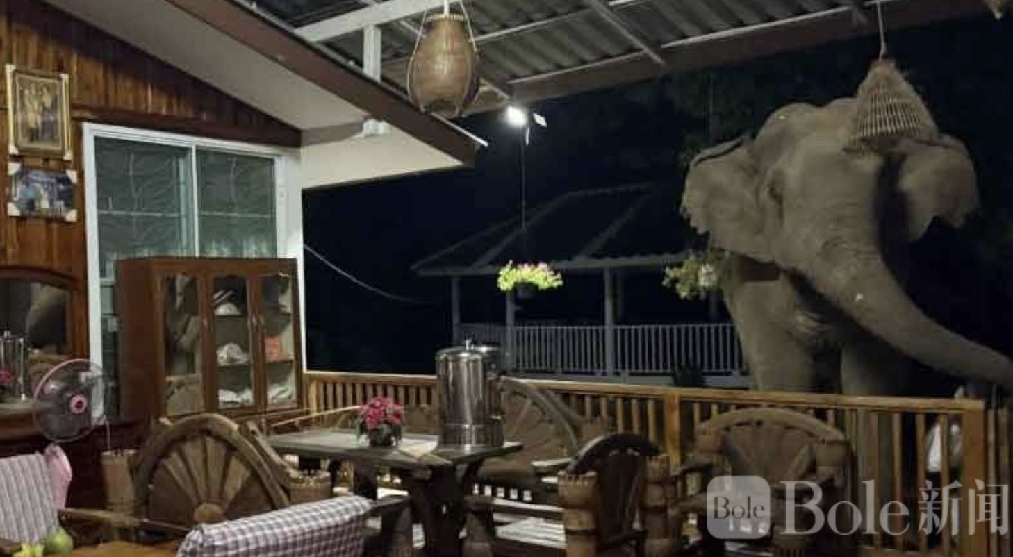 Bole新闻专讯:泰国北柳府(差春骚府)一处民宅近日上演惊险一幕——一头体型庞大的野生大象深夜闯入厨房,不仅破门而入,还在屋内“翻箱倒柜”寻找食物,最终连一整缸大米都被吃了个精光,现场一片狼藉。
