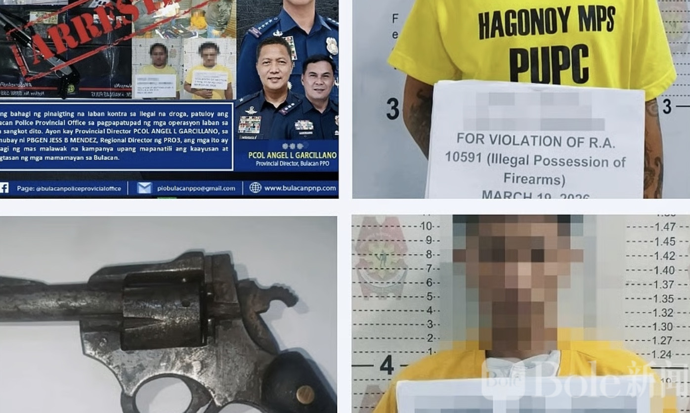 Bole新闻专讯:菲律宾布拉干省警方在3月19日至20日连续开展打击非法毒品和持枪行动,成功逮捕15名嫌疑人,并缴获价值约₱102,680的疑似冰毒、五把未登记枪械、弹药、赃物及买卖款项。此次行动覆盖了该省多个城镇,显示警方打击毒品与非法武器的力度正在加强。
