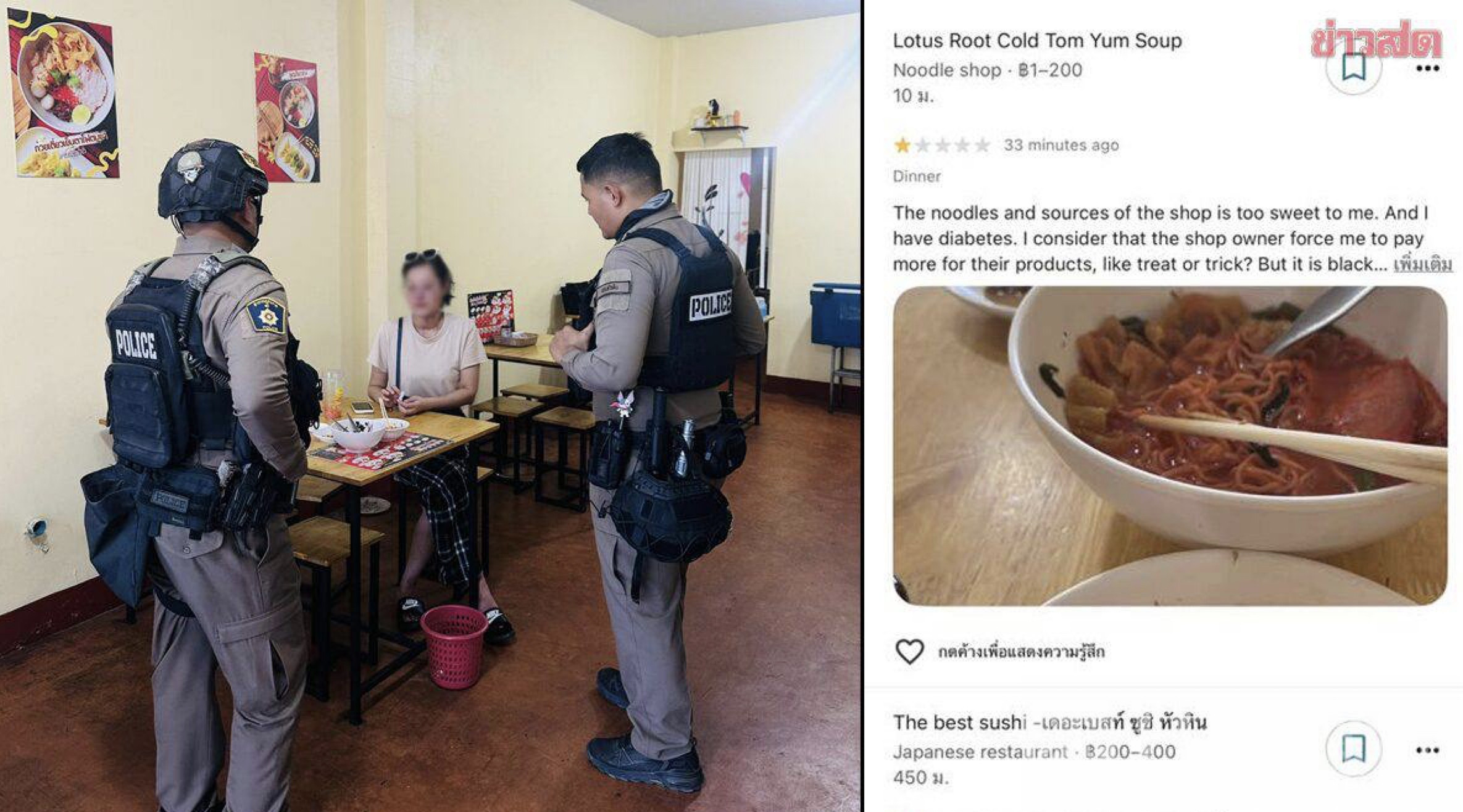 店主透露,该女子已将餐食全部吃完,但仍不付款,甚至在在线平台上给店铺打出1星评价,行为引起店家与当地餐饮业者的不满。警方接报后到场处理,将女子带至警局进一步调查,但据店主称,女子在警局仍以“身上没钱”为由拒付账款。最终,店方要求她删除此前在华欣多家餐厅留下的1星评价,并将事件备案记录。