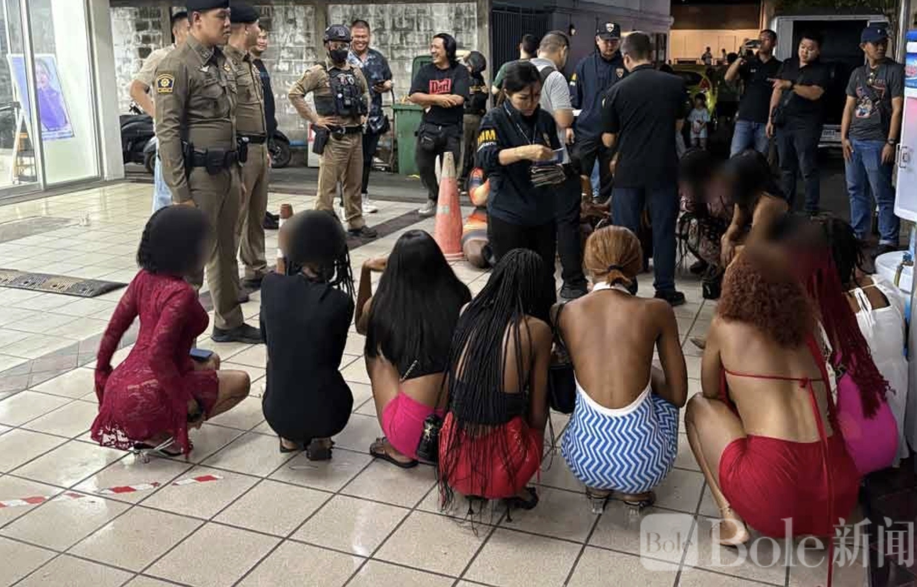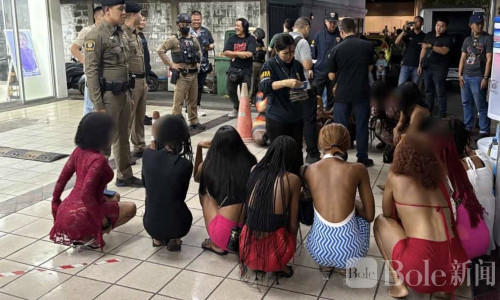 Bole新闻专讯:泰国曼谷素坤逸路4巷,警方与相关部门近日联合行动,一举抓获16名涉嫌向游客提供性服务的外国女子,并启动遣返程序。此次行动由曼谷第5警区、Lumpini 警察分局、社会发展与人类安全部妇女与家庭事务局,以及移民局联合执行,重点针对当地可疑活动展开监控和突袭。