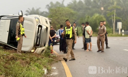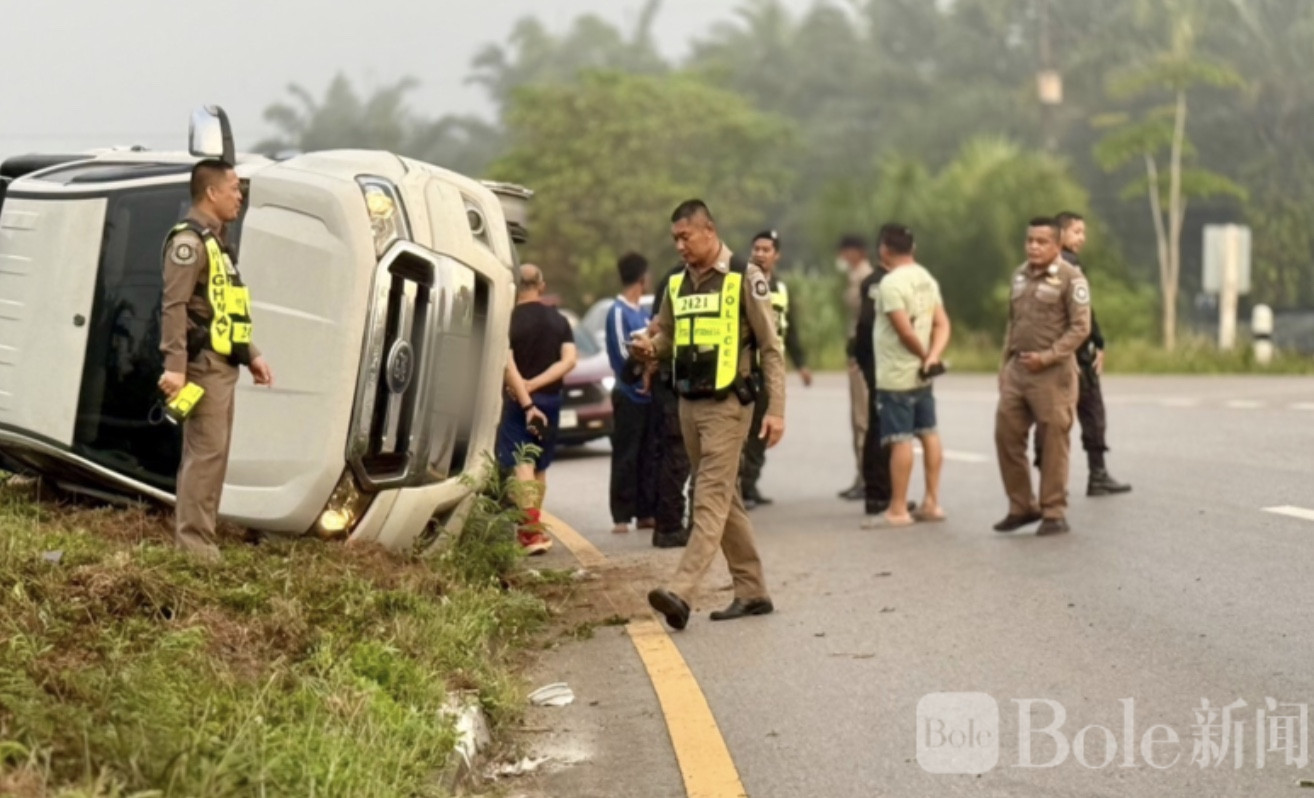 Bole新闻专讯:一场惊心动魄的警匪追逐在泰国春蓬府上演,中央调查局(CIB)联合高速公路警察成功擒获一辆载有非法劳工的白色福特皮卡。事发当日,该车在高速路上逆行逃逸,驾驶者疯狂加速,几度上演生死挑战,最终因操作失控翻车,被警方当场控制。