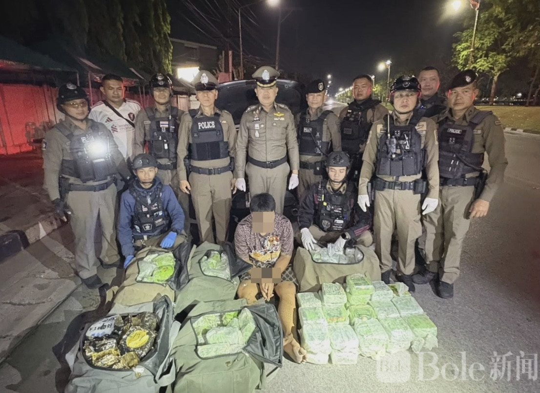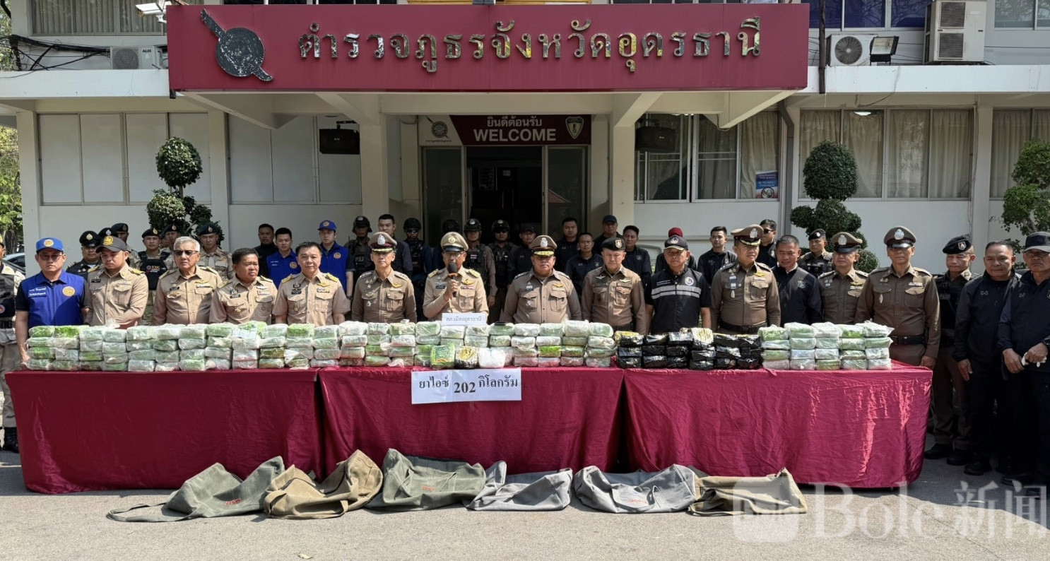 Bole新闻专讯:泰国乌隆他尼警方近日展示了他们在打击跨国毒品犯罪上的新战果——一名19岁的本地少年在深夜试图协助运送冰毒时被抓获,缴获冰毒共计202公斤,市值约3000万泰铢。令人瞩目的是,涉案车辆在经过检查站时试图高速逃逸,最终因车辆超载而失控被迫停下,警方顺利将少年抓获,而驾驶者则侥幸逃脱。