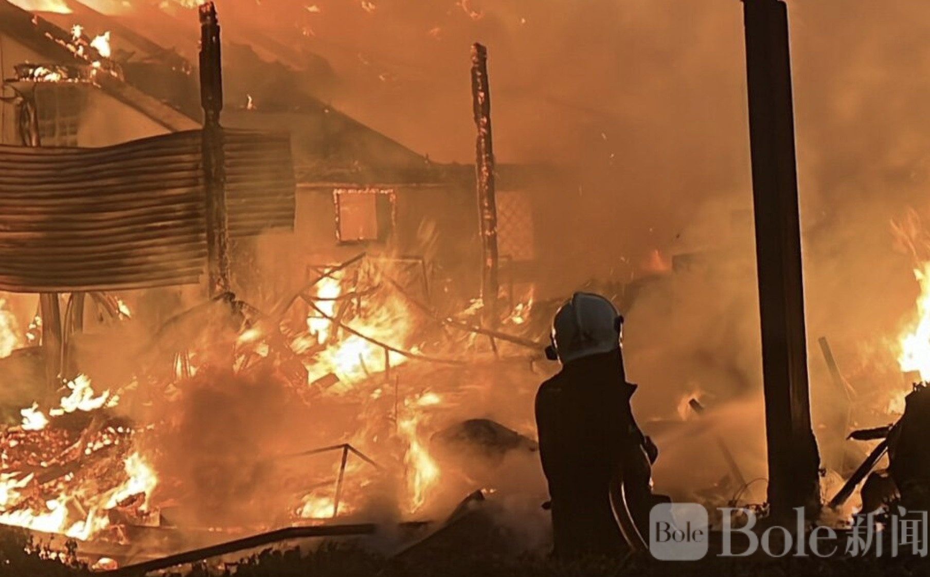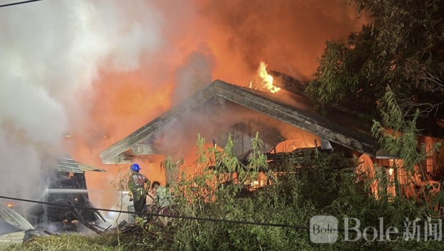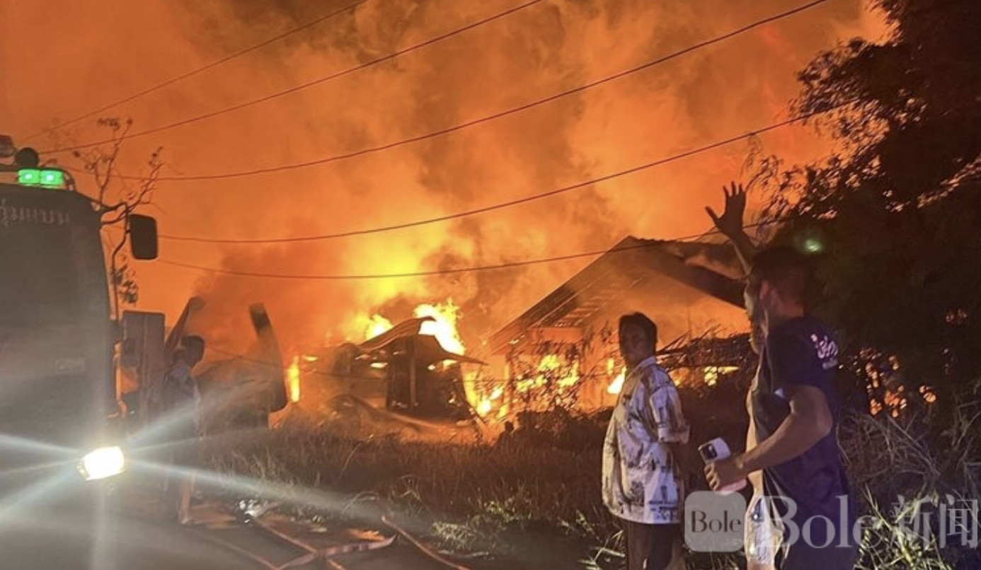 Bole新闻专讯:3月26日清晨5点半左右,泰国สมุทรสาคร府กระทุ่มแบน区บางยาง镇一座家具组装厂突发火灾,浓烟滚滚,火势凶猛,厂区损失初步估计超过两百万泰铢。接报后,当地消防部门迅速调派近10辆消防车赶往现场,全力控制火势,避免蔓延至周边住宅区。