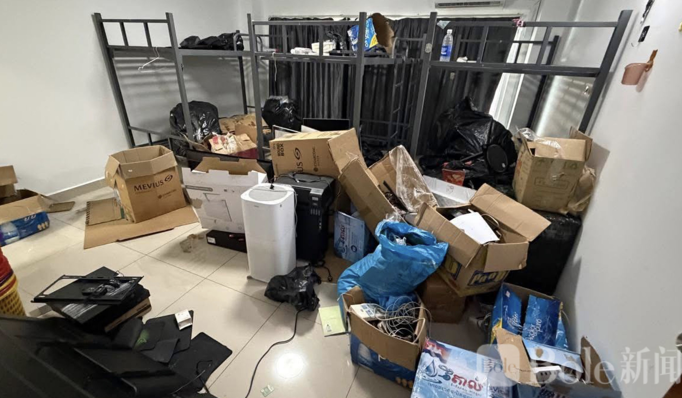 Bole新闻专讯:3月26日,柬埔寨西哈努克省,省行政联合部队对位于西港的疑似网络诈骗场所“金玉满堂”赌场展开突击检查。此次行动中,执法人员查获了大量可疑物品,包括133台电脑、439部手机以及5支气枪,并成功抓获9名涉案嫌疑人。