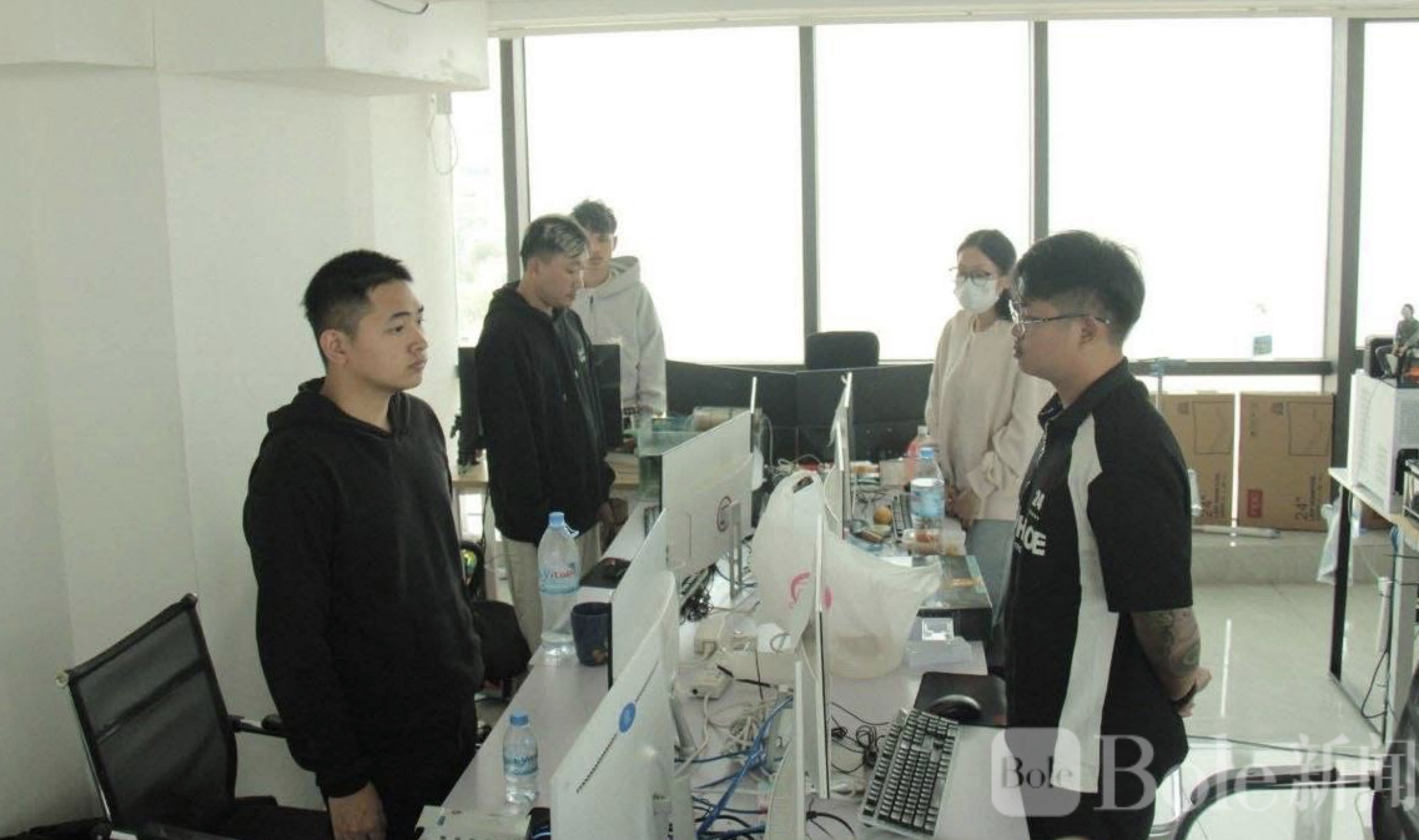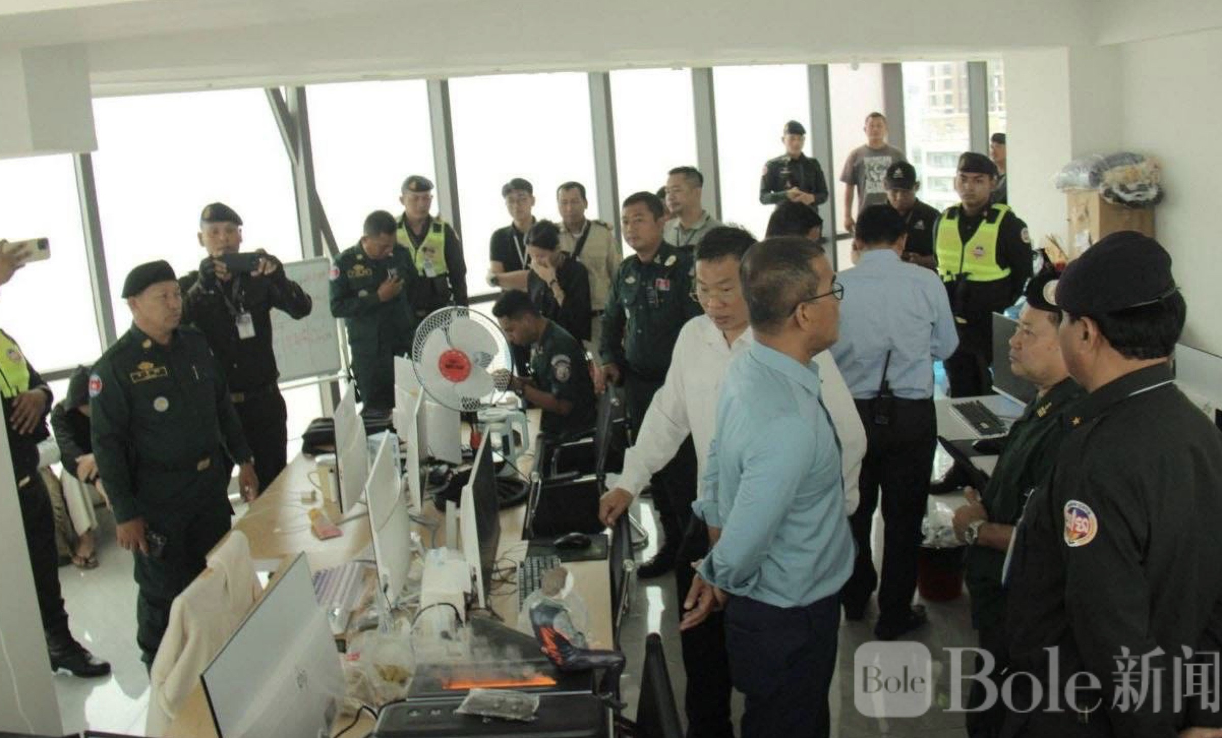 Bole新闻专讯:3月27日下午,金边市执法部门联合军警部队展开快速突击行动,一处隐藏在堆谷区时代广场3号的非法网络赌博窝点被彻底捣毁。行动中,执法人员迅速控制现场,依法逮捕8名涉案人员,包括男女各类工作人员,并当场查获多台用于网络赌博的电脑及相关设备。