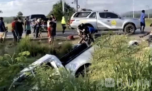 Bole新闻专讯:泰国雷阳省尼克姆帕塔纳区3月29日发生一起严重车祸,一辆载有7名缅甸劳工的白色皮卡与一辆黑色皮卡在交叉路口迎面相撞,现场瞬间陷入混乱,造成9人受伤,其中包括3名伤势严重的缅甸劳工。