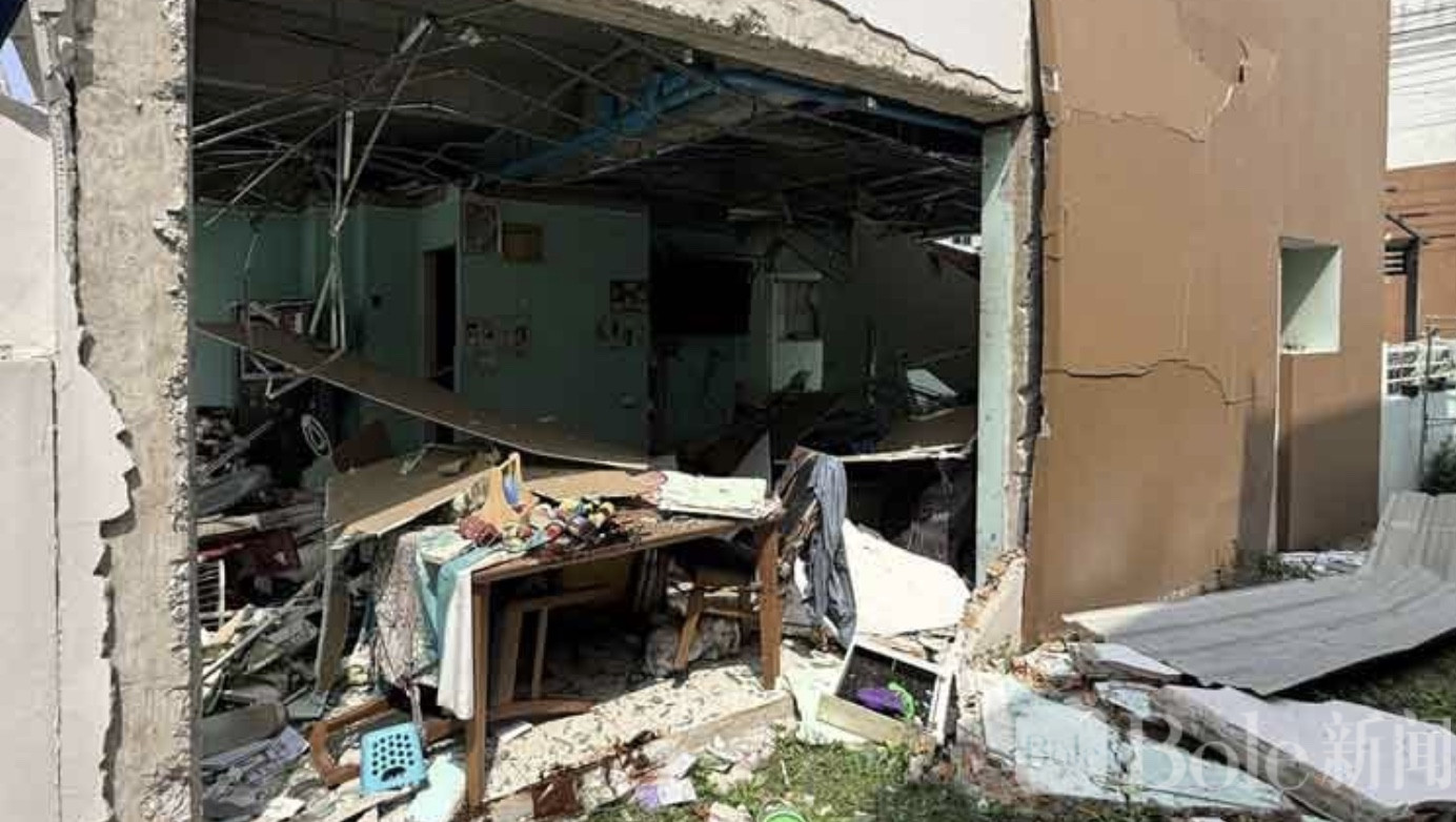 Bole新闻专讯:凌晨3点,泰国ปทุมธานี(巴吞他尼)一处住宅区突然发生气体爆炸,四口之家惊慌逃生,周边共8户房屋受损,场面一度混乱,居民心有余悸。