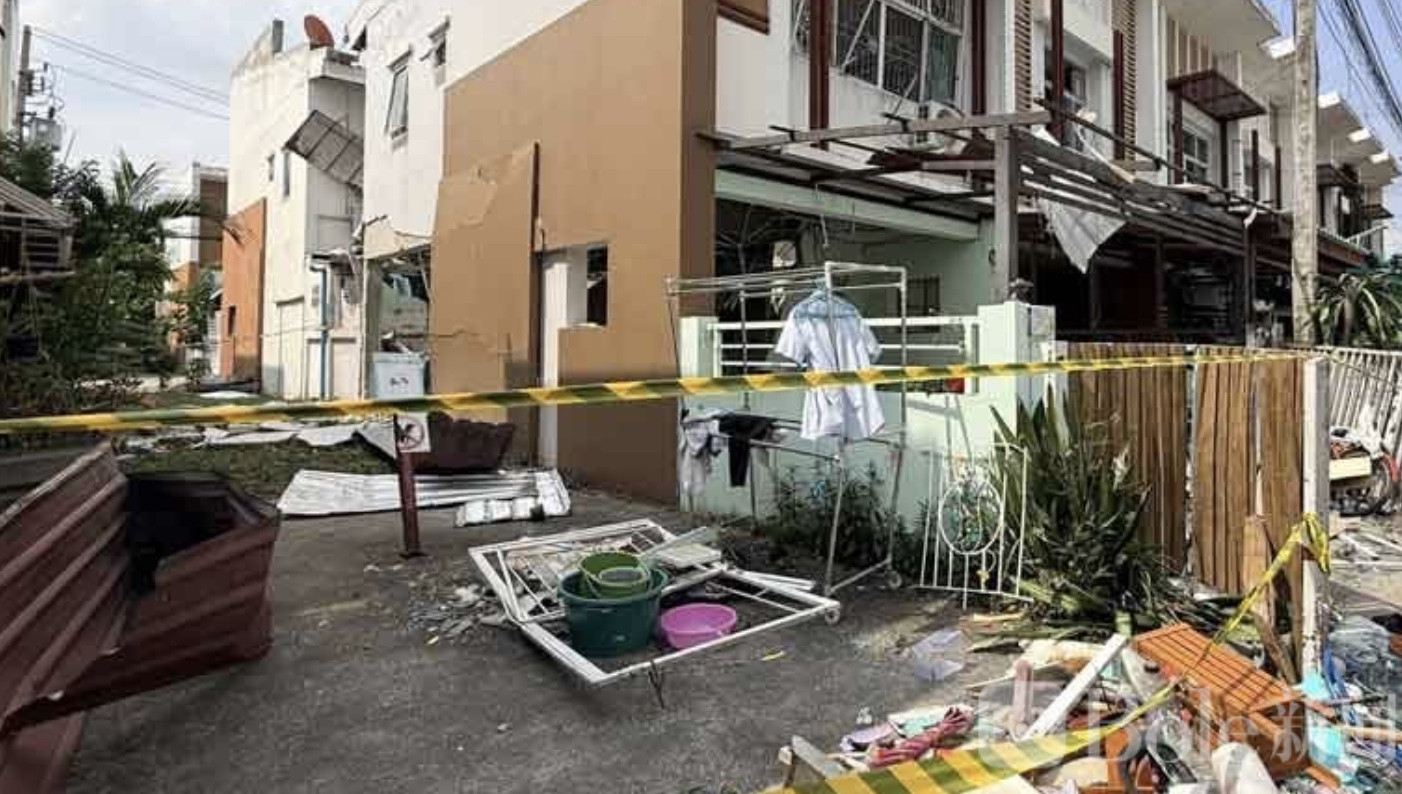 据当地警方接报,事故发生在เจ้าพระยาวิลล่า小区,当时爆炸来自一栋两层角屋。屋内的父母与两个孩子惊醒,尝试通过楼梯下楼,却发现楼梯已被炸毁,只能爬出房屋残骸。所幸全家安然无恙。爆炸冲击波波及邻居房屋,总计8户受损,一辆摩托车和一辆汽车也不同程度受损。