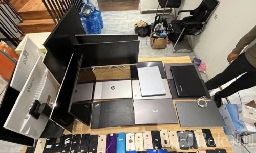现场查获的电子设备数量也相当惊人:执法人员共扣押89台一体机电脑、57台笔记本电脑、73台iPad、1421部手机,以及打印机、显示器和多个金属储物柜等设备。从规模来看,这里显然不是普通办公场所,更像是一条高度组织化的网络作业线。