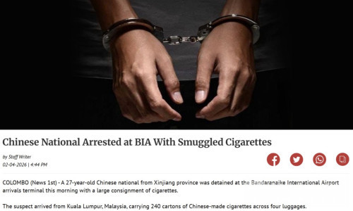 Bole新闻专讯:斯里兰卡执法部门近日通报,一名来自中国新疆的27岁男子因涉嫌走私香烟,在科伦坡的班达拉奈克国际机场入境大厅被当场拘捕。案件发生在4月2日,执法人员在例行检查中发现异常,随即展开深入查验,最终在其行李中查获大量未申报香烟。