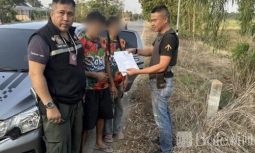 事件发生于4月2日,当地警方根据素攀武里府和曼谷法院发出的多项逮捕令,锁定42岁的Prasert(暱称: เหว่า)。他曾涉及毒品交易及诈骗案件,潜逃至女友住所藏身。当天,警方在3032号公路(南邦-狮城线)发现他驾驶一辆私家车,车上正坐着同穿情侣装的女友。执法人员果断拦截,将两人控制。