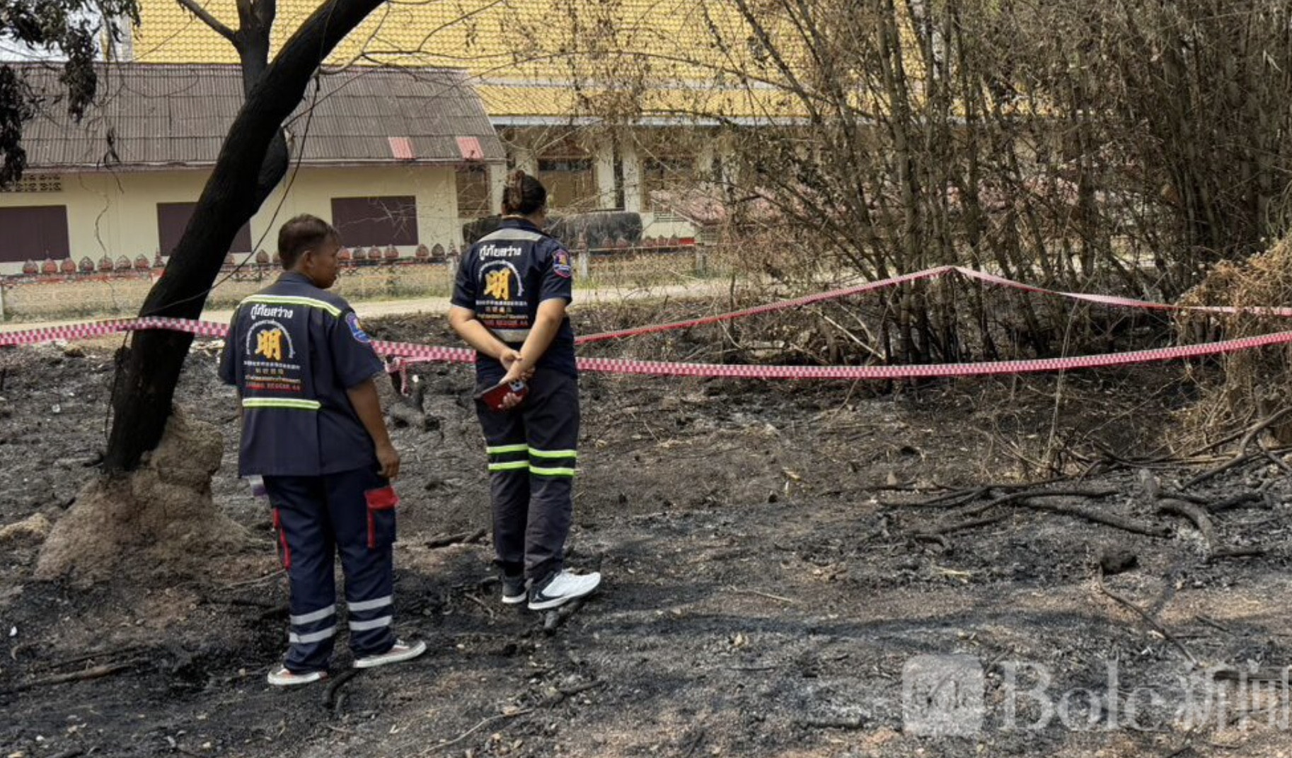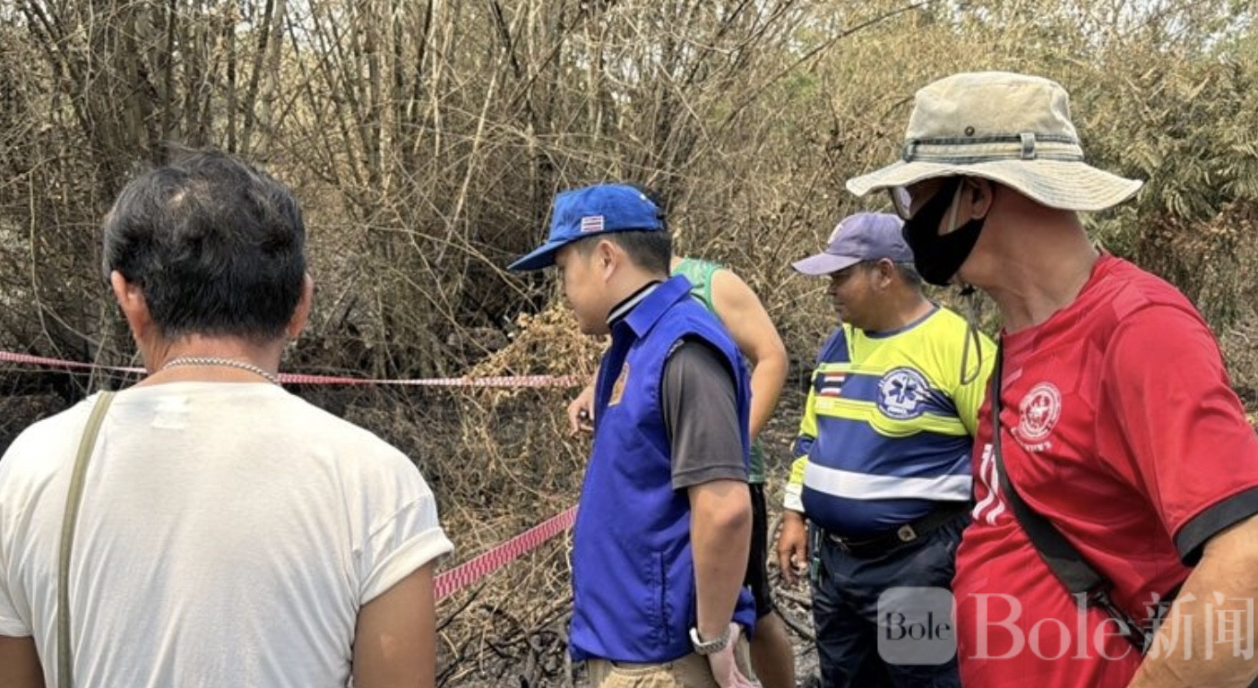 Bole新闻专讯:4月4日上午,泰国甘榜佩查府一所幼儿园旁的密林中,惊现一具被烧焦的尸体,仅剩骨架。当地警员与救援队赶赴现场进行初步勘查,并封锁现场,等待进一步的法医鉴定。