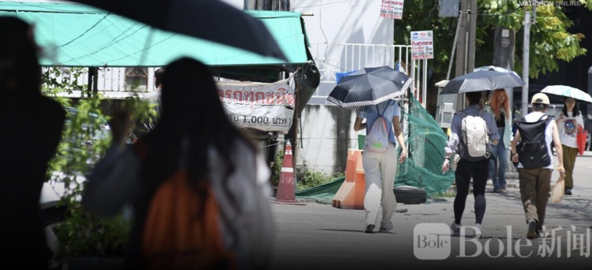 Bole新闻专讯:泰国气象局4月4日发布最新预报称,未来24小时,北部、东北部和中部地区将持续炎热至酷热,部分地区最高气温可达42℃。与此同时,空气中粉尘和烟霾累积水平已经超标,局部空气浑浊,让人呼吸感不适。气象局提醒民众尽量避免长时间在露天停留,外出时佩戴N95口罩,保障自身安全。