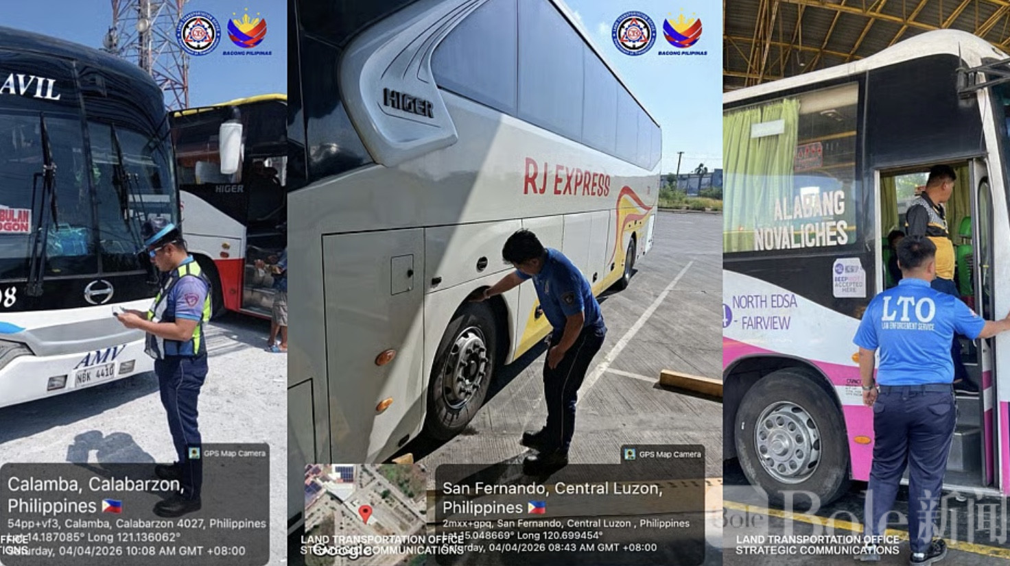 从目前公布的信息来看,检查行动已经在多个交通节点展开,包括拉古纳省卡兰巴市、中央吕宋地区的马巴拉卡特和圣费尔南多市,以及奎松市北EDSA客运总站等人流密集区域。执法人员不仅检查车辆,还会对运营资质、车况维护记录等进行抽查。