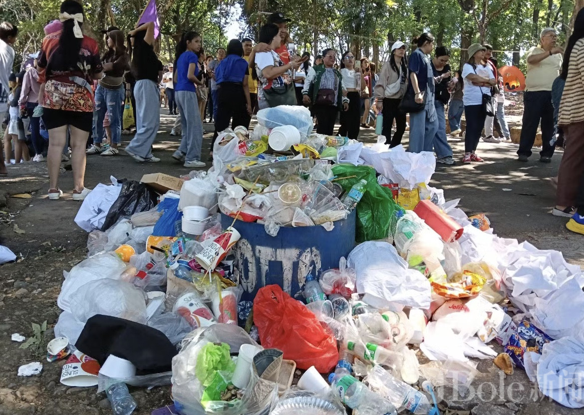 在布拉干省 圣何塞德尔蒙特(San Jose del Monte) 的卢尔德圣母洞朝圣地,情况同样类似。垃圾桶被塞得满满当当,甚至溢出,一些垃圾还散落在加尔瓦略山(Calvary Hill)和附近野餐区。