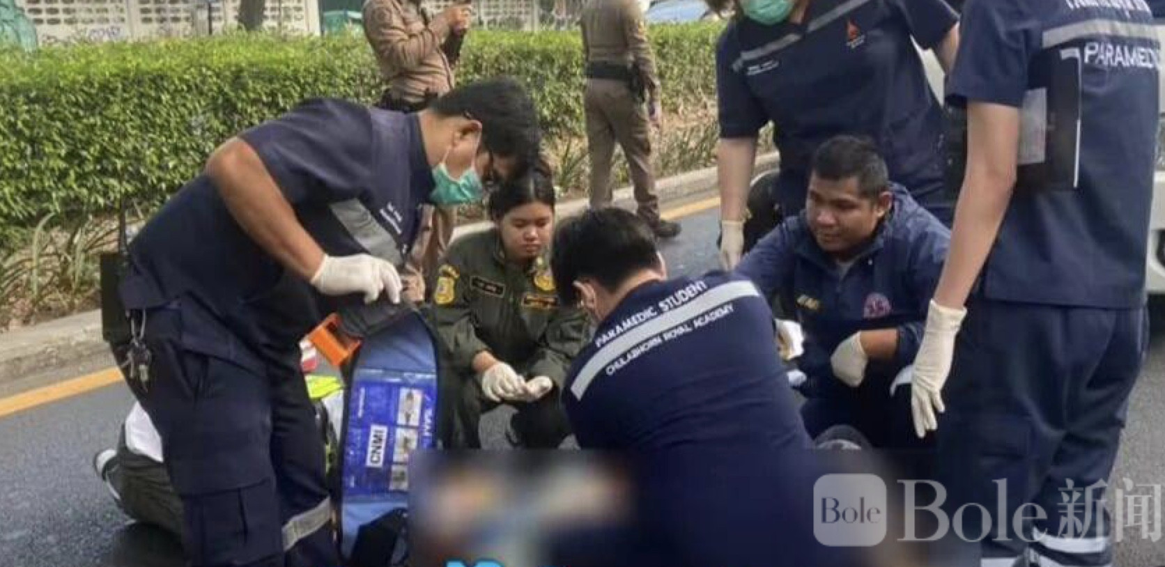 Bole新闻专讯:2026年4月4日,泰国曼谷拉抛区发生惊险事件,一名22岁的中国台湾籍男子从人行天桥跳下,导致重伤。事故发生后,帕凤裕庭警察局局长马鲁及多名调查人员,连同救援队和当地志愿者迅速赶往事发现场进行处置。