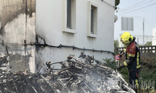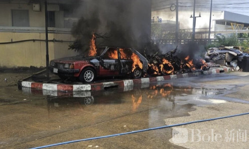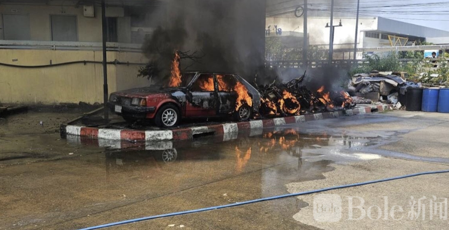Bole新闻专讯:2026年4月7日上午,曼谷市区一处居民区突发火灾,一辆摩托车起火后迅速蔓延,引燃旁边停放的汽车,现场一度火势猛烈,周边居民受到惊吓。