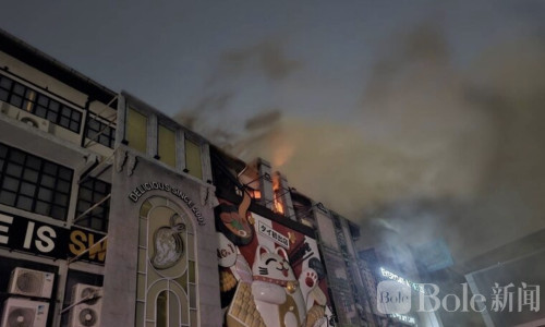 火灾发生在建筑顶部露台区域,火势猛烈。消防员使用高压水枪约15分钟成功将火扑灭。初步调查显示,火灾未造成人员滞留,所有店员和顾客均已安全撤离。