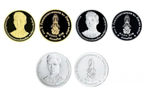 据了解,本次发行的纪念币共分为三种材质,分别为纯金、纯银以及白铜版本,整体设计精美,具有较高纪念意义与收藏价值。硬币正面印有拉玛八世身着全式军服的肖像,庄重典雅;背面则刻有皇家御印及相关纪念字样,彰显王室历史底蕴。