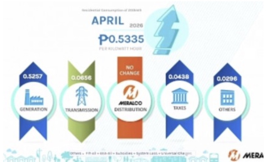 Bole新闻专讯:马尼拉电力公司(Meralco)最新宣布,4月电价将上调,每千瓦时上涨0.5335比索。这一调整来得不算突然,但对不少家庭来说,账单数字还是会“肉眼可见”地往上走一截。