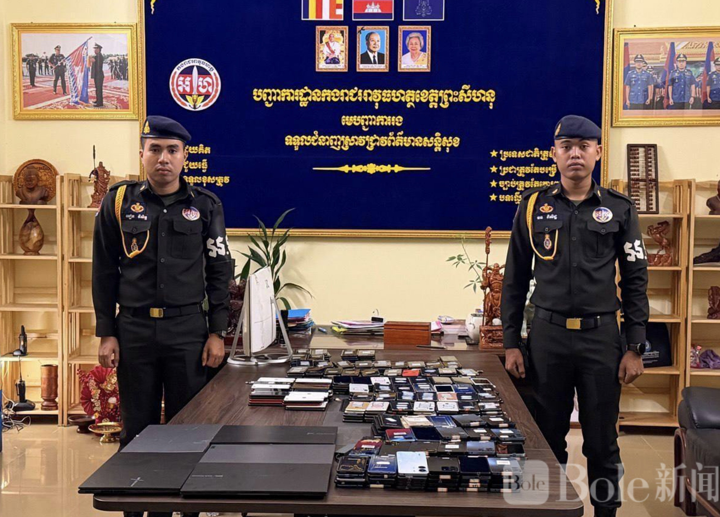 Bole新闻专讯:柬埔寨西港省宪兵近日展开一场针对电信诈骗窝点的突击行动,在当地第4分区第4村一栋办公楼内成功端掉一个隐蔽运行的诈骗据点,一口气抓获49名外籍嫌疑人,现场设备数量之多,也让人有点“触目”的感觉。
