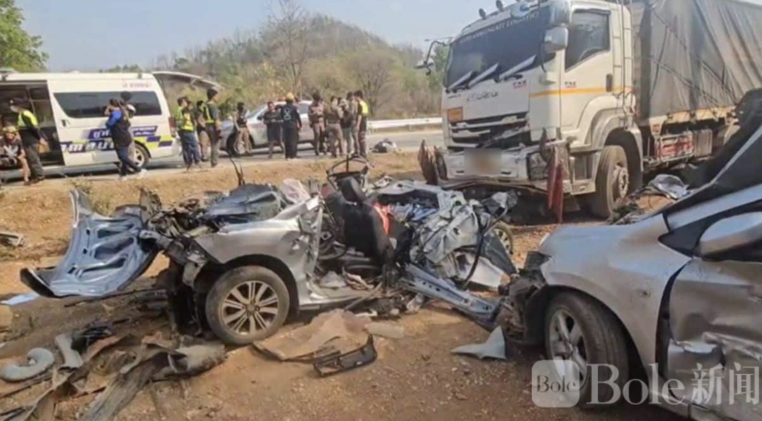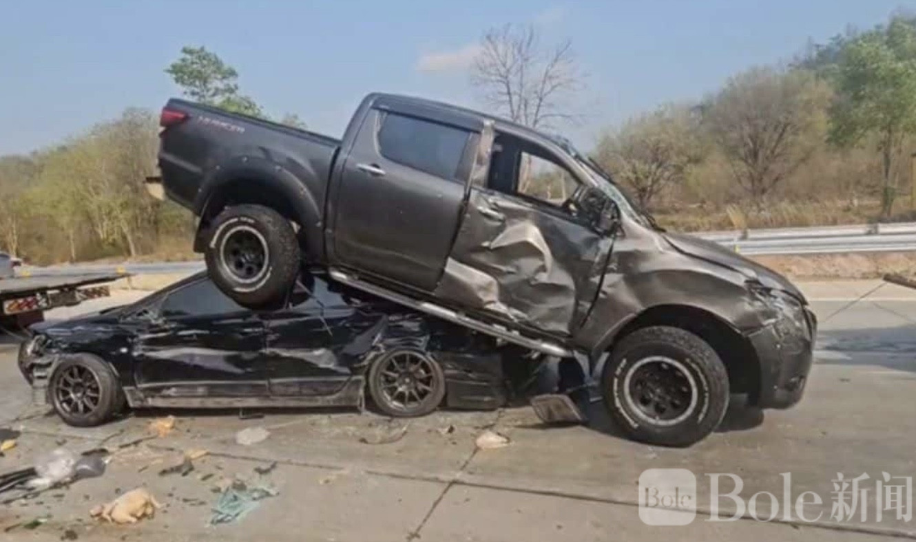 Bole新闻专讯:2026年4月11日下午,泰国南邦府腾县一段公路发生严重连环车祸,一辆18轮大型卡车失控撞上多辆车辆,事故共造成2人死亡、8人受伤,现场情况惨烈,目前警方正对事故原因展开调查。