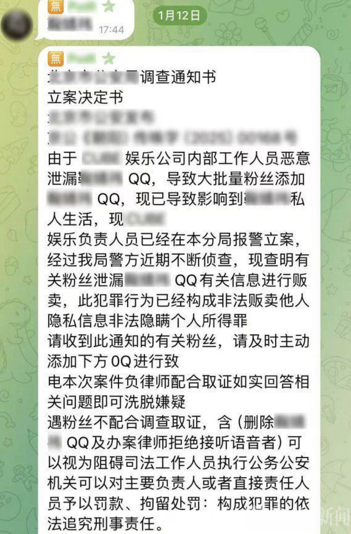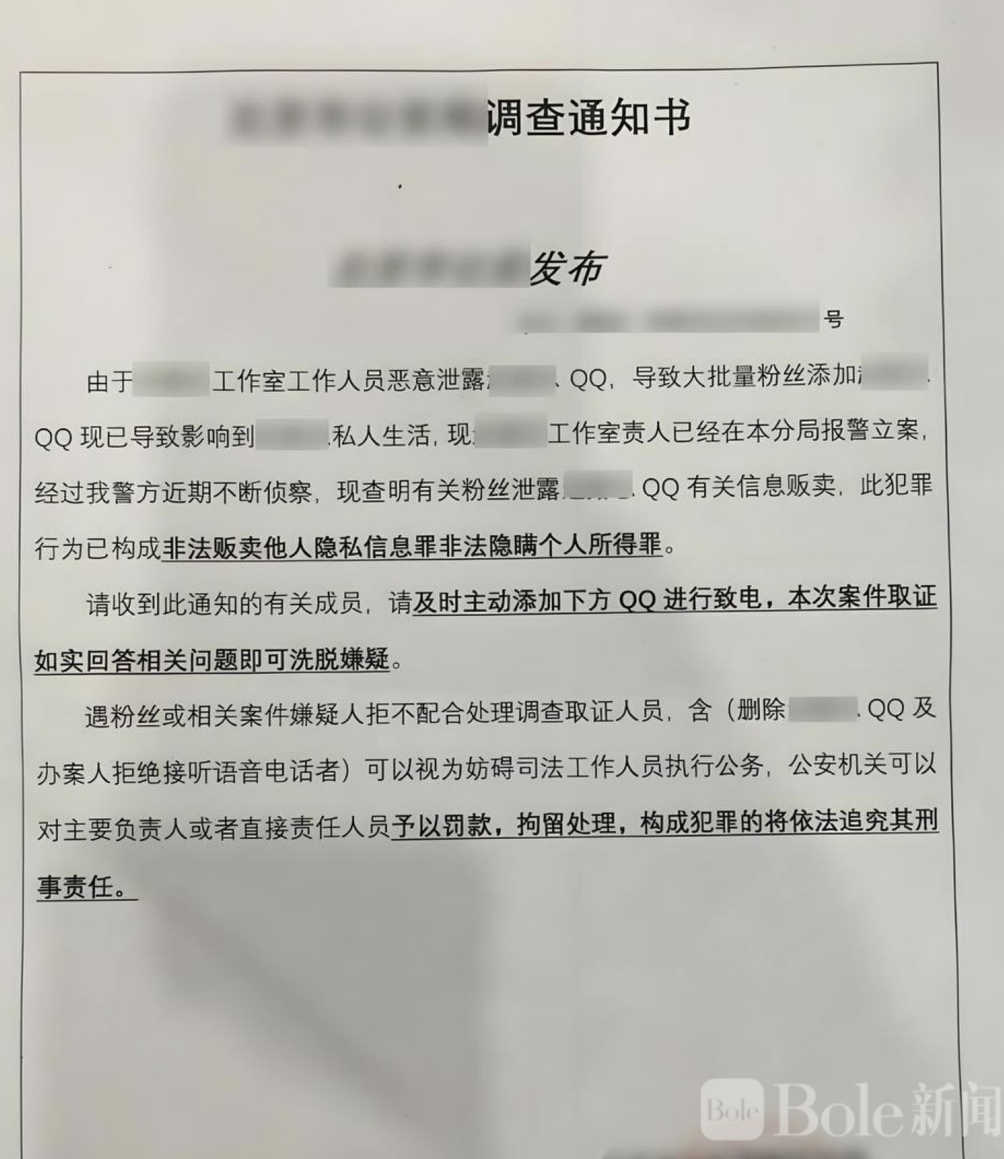 小李中奖后,被对方告知获得了所谓“明星私人QQ号”。她加上之后,并没有联系到偶像,反而收到一份伪造的“立案决定书”。对方身份瞬间“升级”为所谓“侦查人员”,声称她涉嫌泄露、贩卖明星隐私,已经被立案调查。