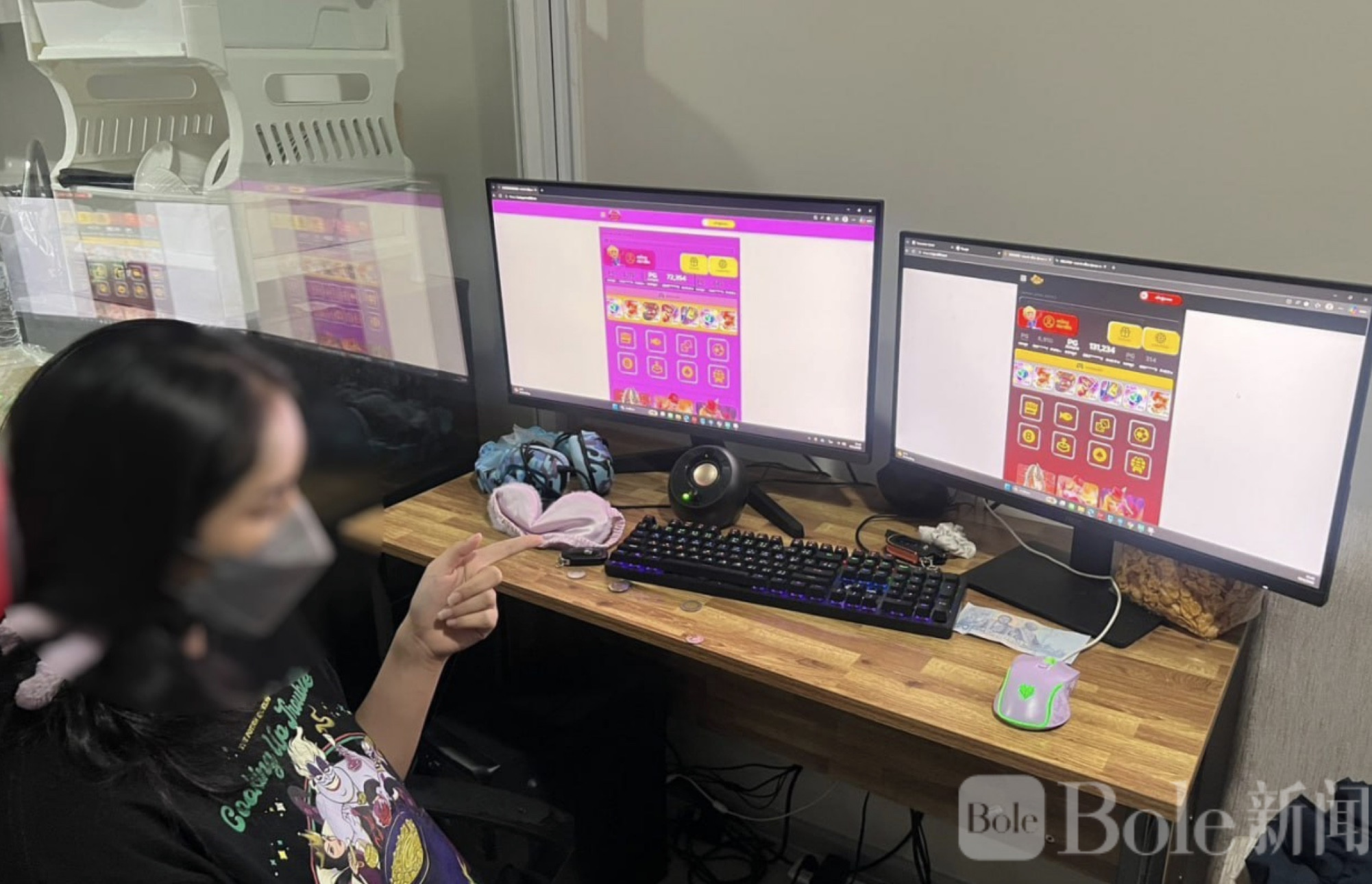 行动当天,警方先是在暖武里府一处公寓展开突袭,在室内当场控制两名嫌疑人,并查获电脑主机、显示器、路由器以及多部手机等设备。现场看上去更像一间“迷你数据中心”,各种线路交错、设备密集,显然长期用于运营网络平台。