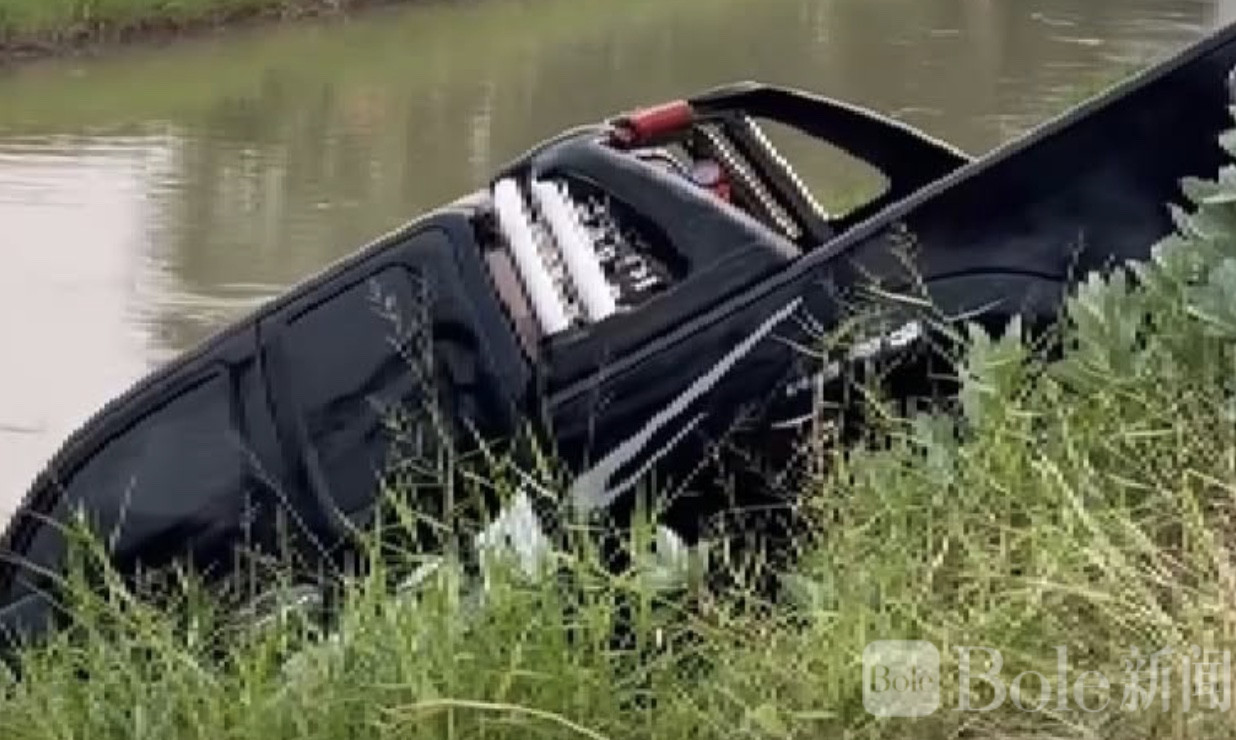 现场发现,一辆日产皮卡车已大部分沉没在水流湍急的运河中央,岸边可见超过10米长的明显轮胎刮痕,显示车辆曾在失控状态下冲入水中。