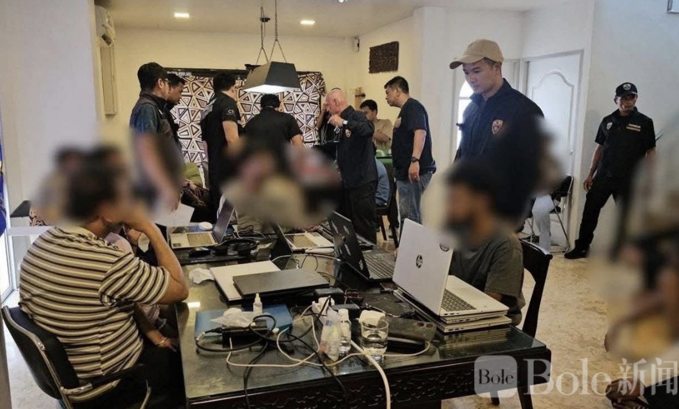 Bole新闻专讯:泰国警方近日在芭堤雅展开一次突击行动,一栋看似普通却戒备森严的豪华泳池别墅被迅速包围。随着执法人员破门而入,一个隐藏在高墙之内的诈骗窝点随即曝光——屋内二十多名印度籍男子正围着笔记本电脑和一摞摞手机忙碌操作,一个专门针对投资骗局的诈骗呼叫中心就这样被当场揭开。