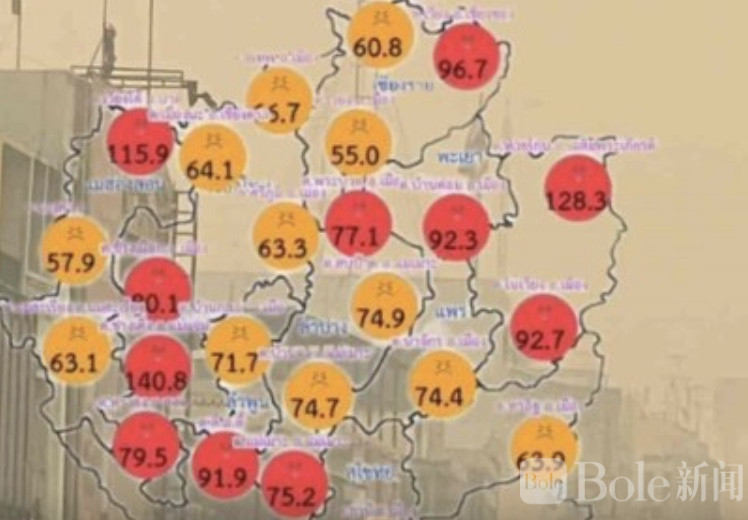 Bole新闻专讯:2026年4月21日上午7时,泰国空气污染问题解决传播中心发布最新空气质量监测报告显示,全国多地PM2.5浓度持续超标,其中泰国北部地区污染情况尤为严重,多地已进入红色警戒级别。