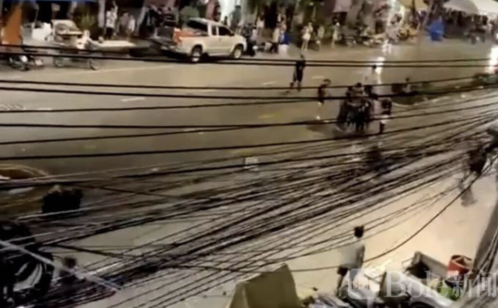 事情发生在凌晨约1点,地点位于马塔普一带的夜市与活动区域。当时正值传统泼水节“วันไหล”活动,街头气氛原本还挺热闹:音乐震天、卡车音响轰鸣,年轻人和外来务工人员挤在一起玩水、跳舞,整条街几乎像被点燃一样。