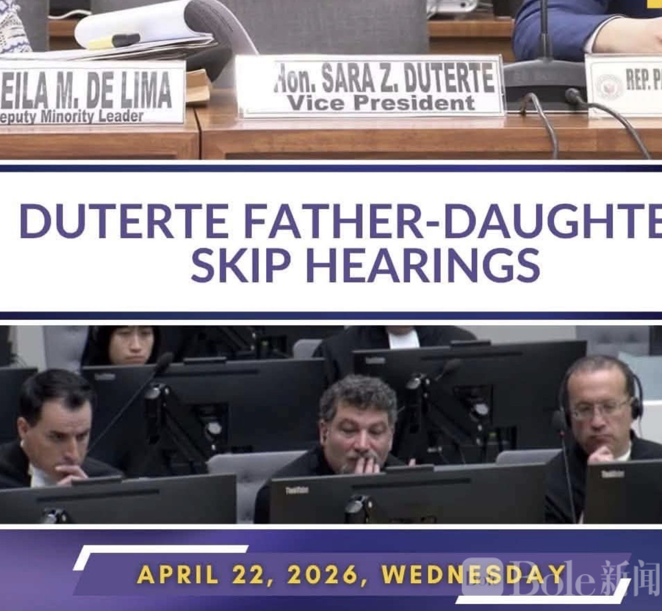 Bole新闻专讯:菲律宾政坛再现引人关注的同步动态,副总统萨拉·杜特尔特未出席众议院弹劾相关程序,而其父亲、前总统罗德里戈·杜特尔特同样未出席国际刑事法院(ICC)上诉庭会议,引发外界高度关注。