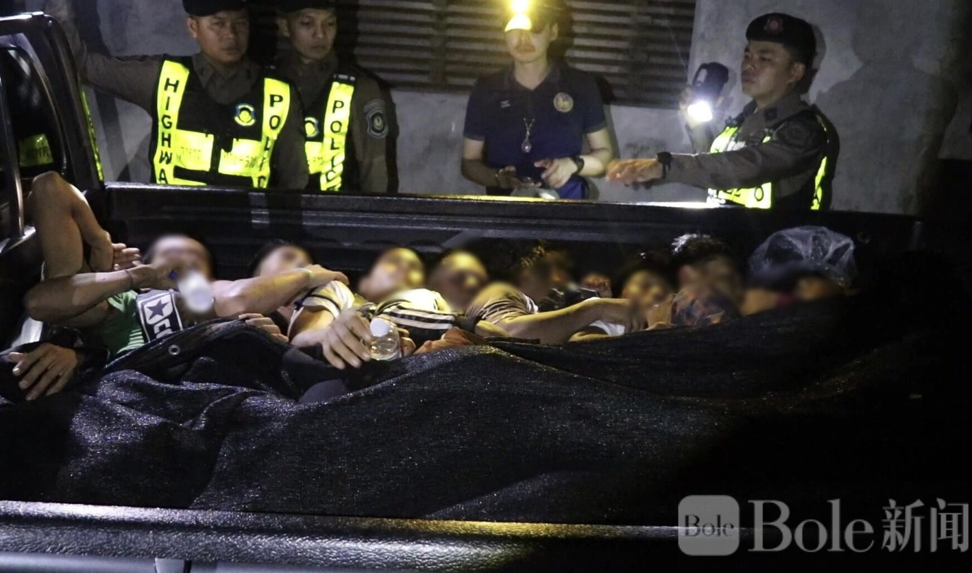 Bole新闻专讯:泰国春蓬府塔沙县执法部门联合多单位展开行动,成功捣毁一个非法偷运外籍劳工团伙,共抓获19人。行动中,嫌疑人驾驶皮卡冲撞公务车辆试图强行逃逸,但最终仍被全部拦截落网。